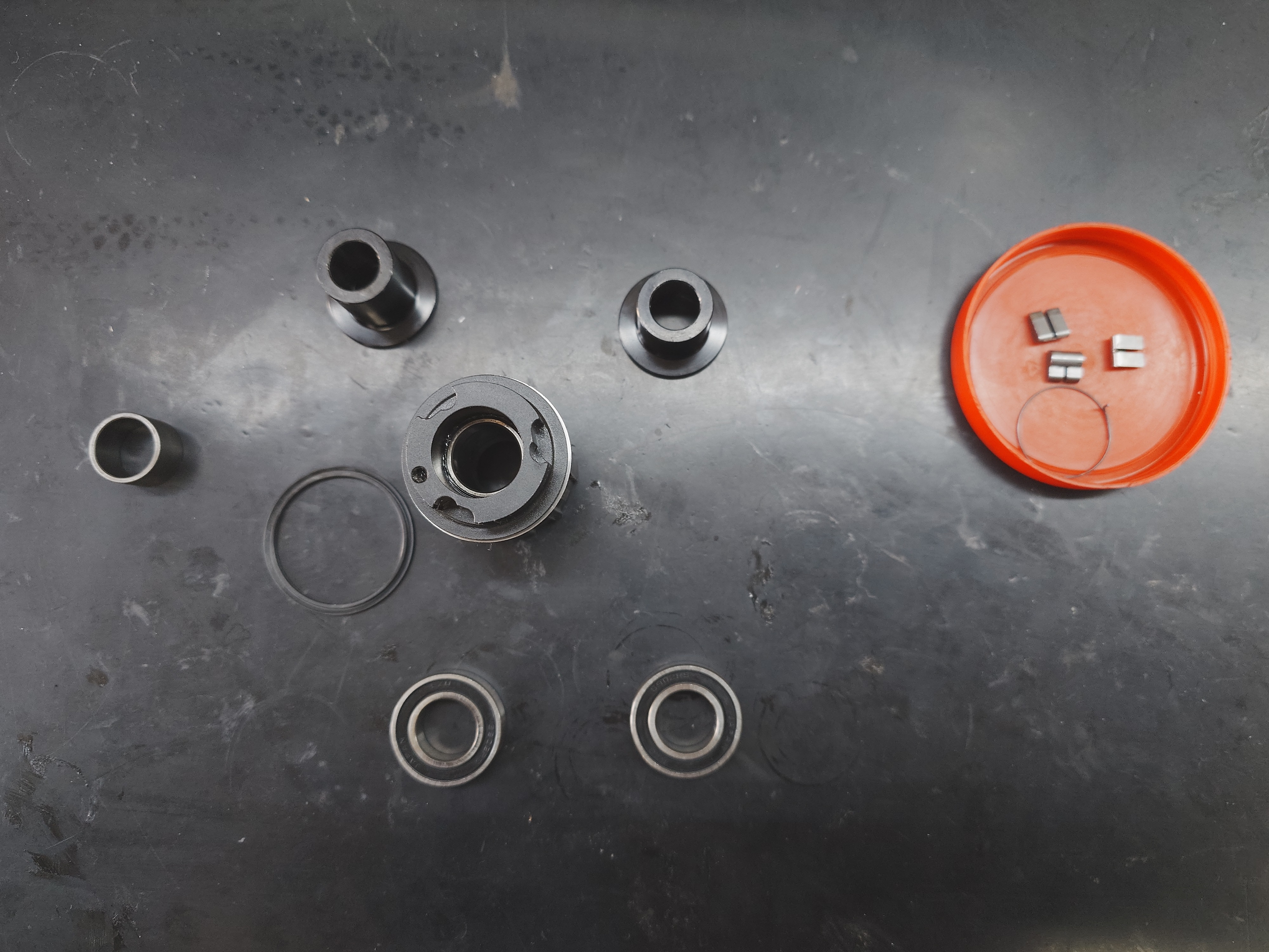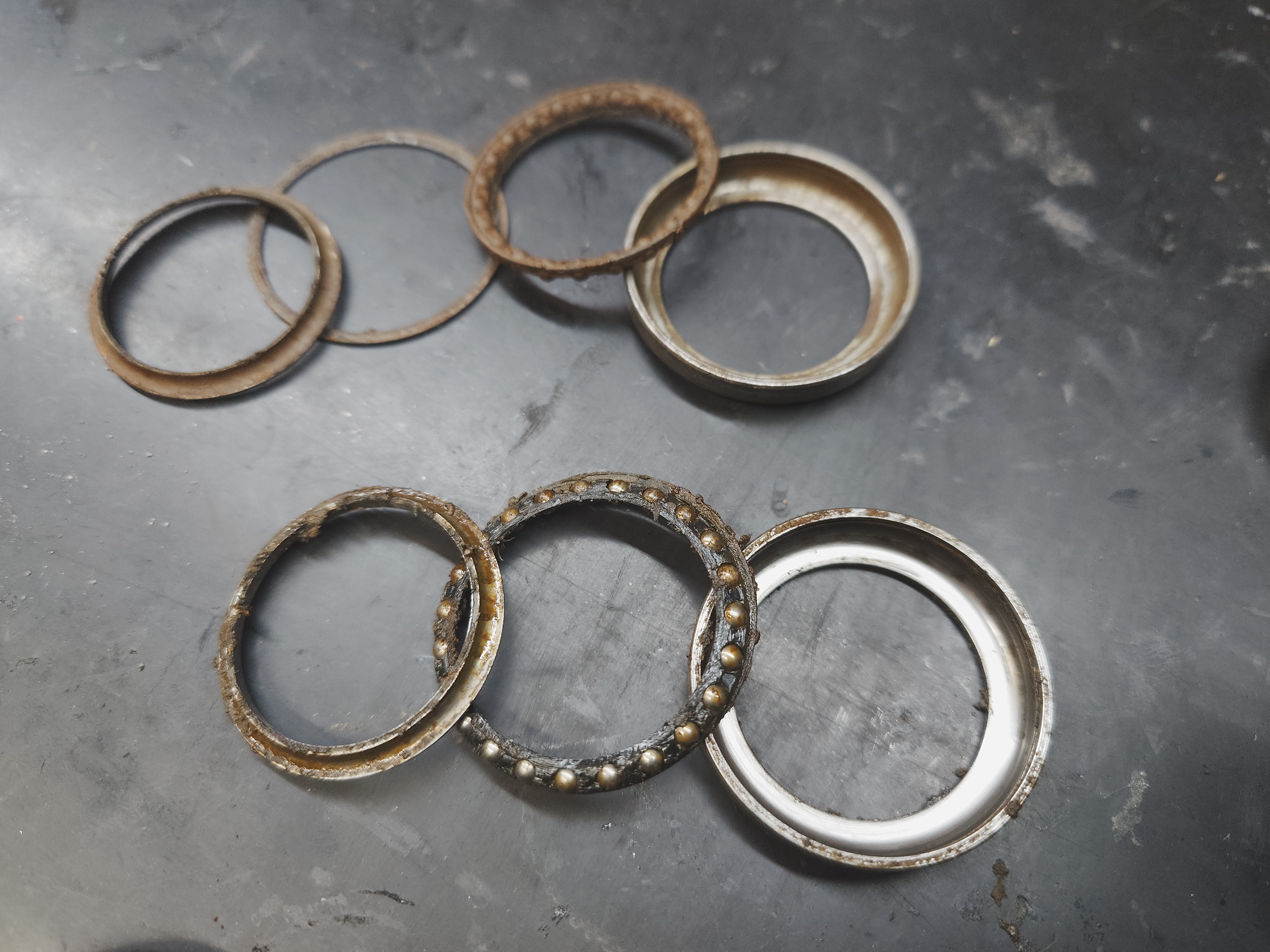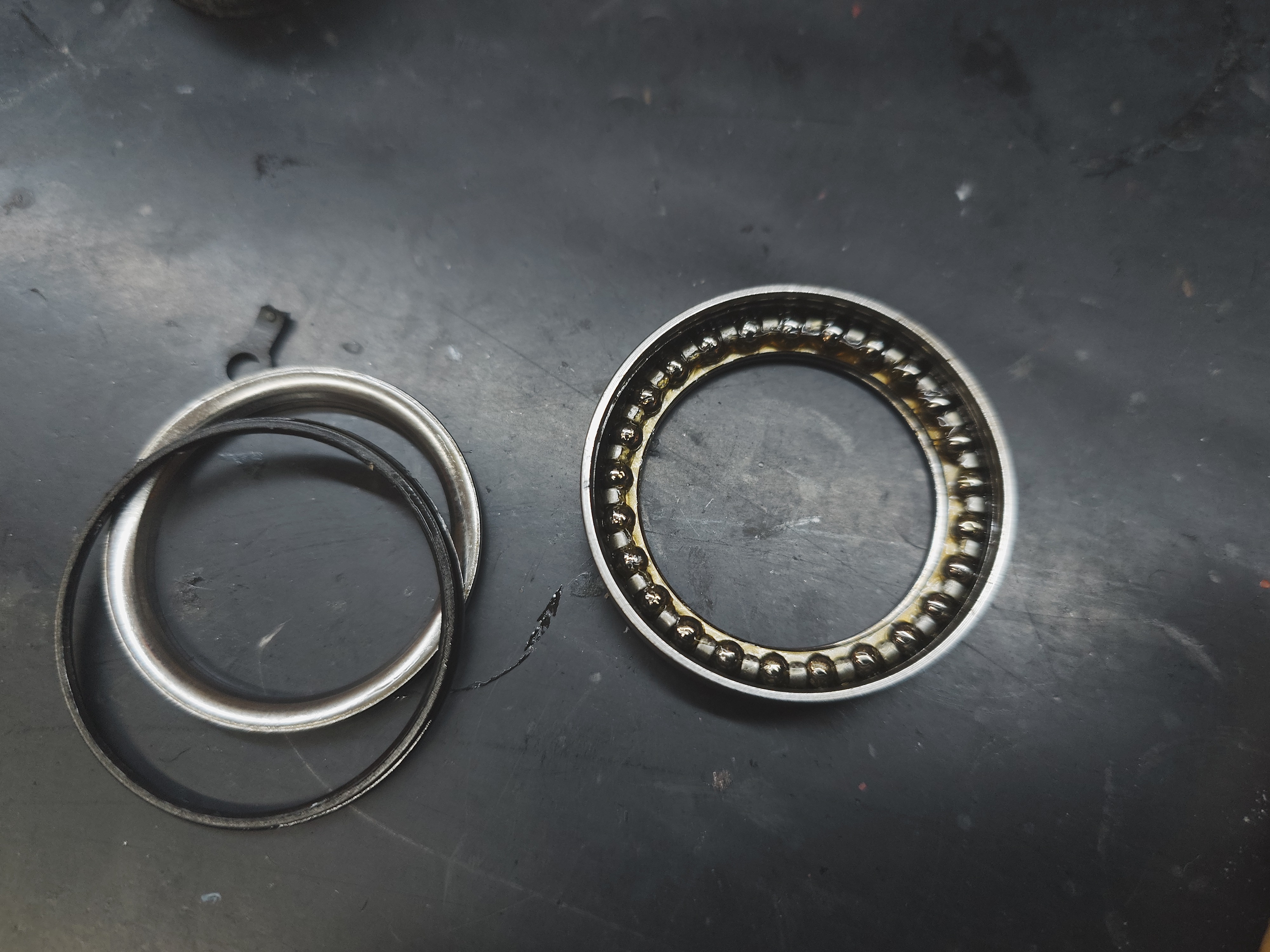 • je znát mytí a ježdění v drsných podmínkách • ložiska obě vyrezlé • podrezlá pouzdra • velká důlková koroze • v nových ložiscích vyměněno mazivo za Almagard 3752 = velké prodloužení životnosti