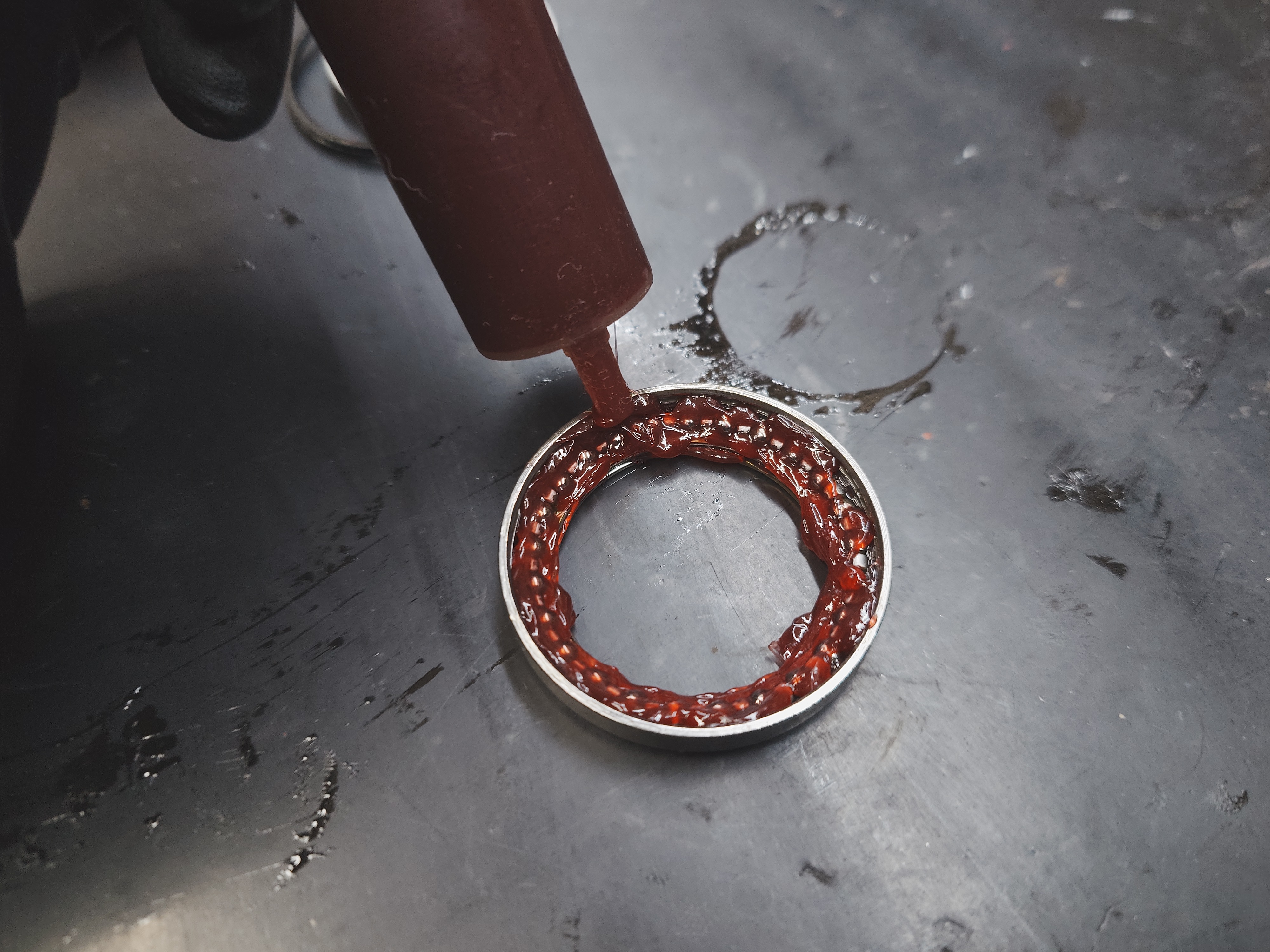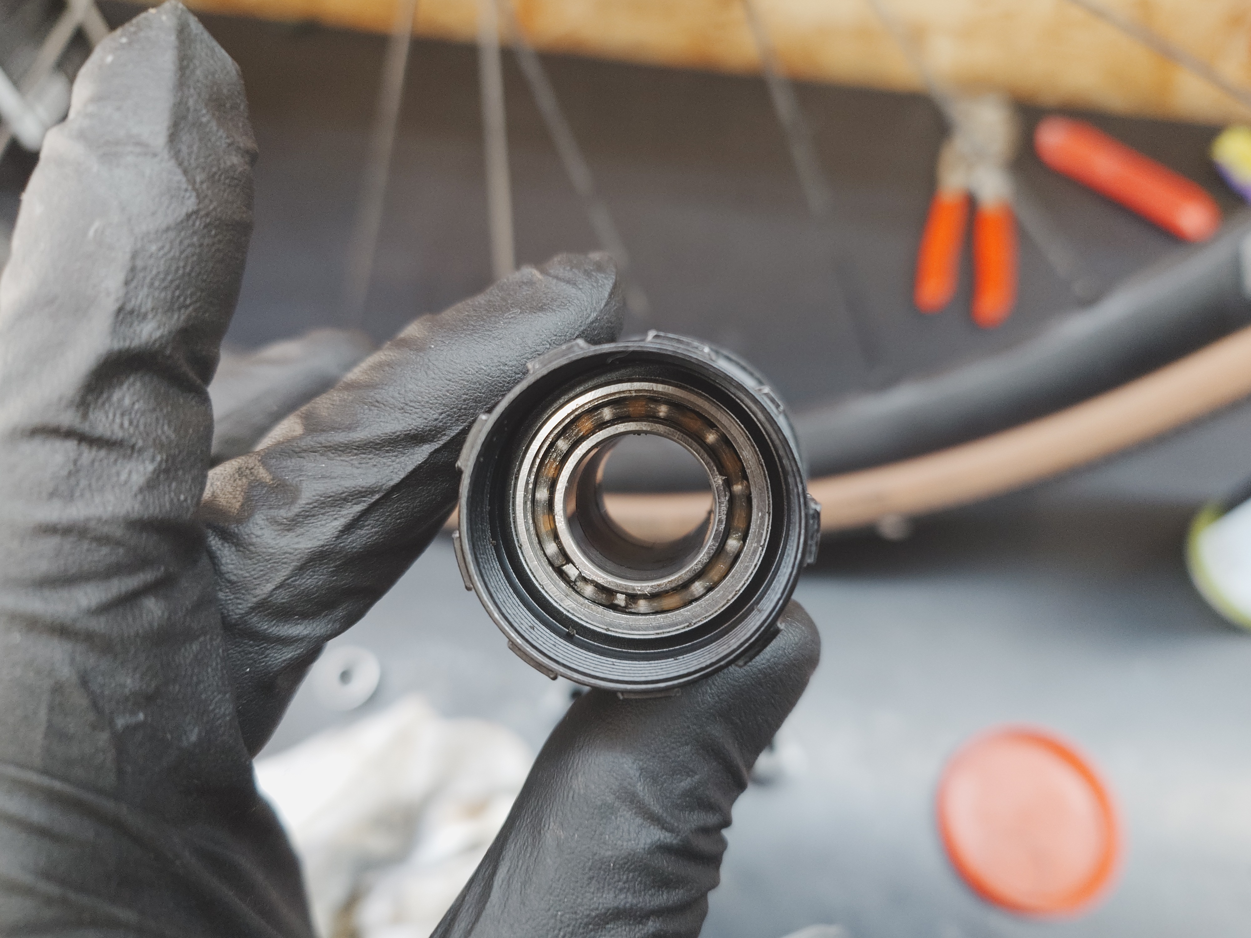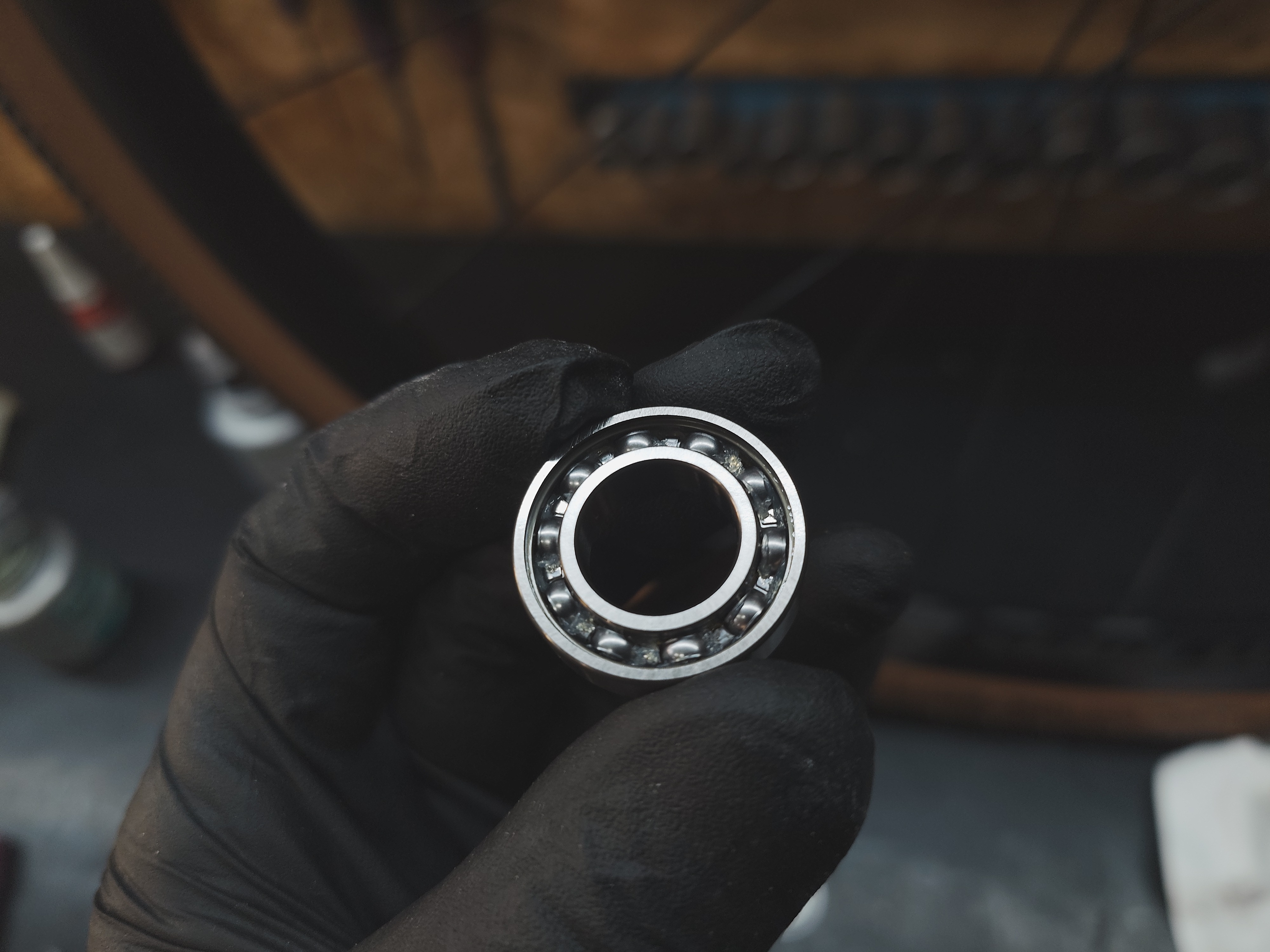 • je znát mytí a ježdění v drsných podmínkách • ložiska obě vyrezlé • podrezlá pouzdra • velká důlková koroze • v nových ložiscích vyměněno mazivo za Almagard 3752 = velké prodloužení životnosti