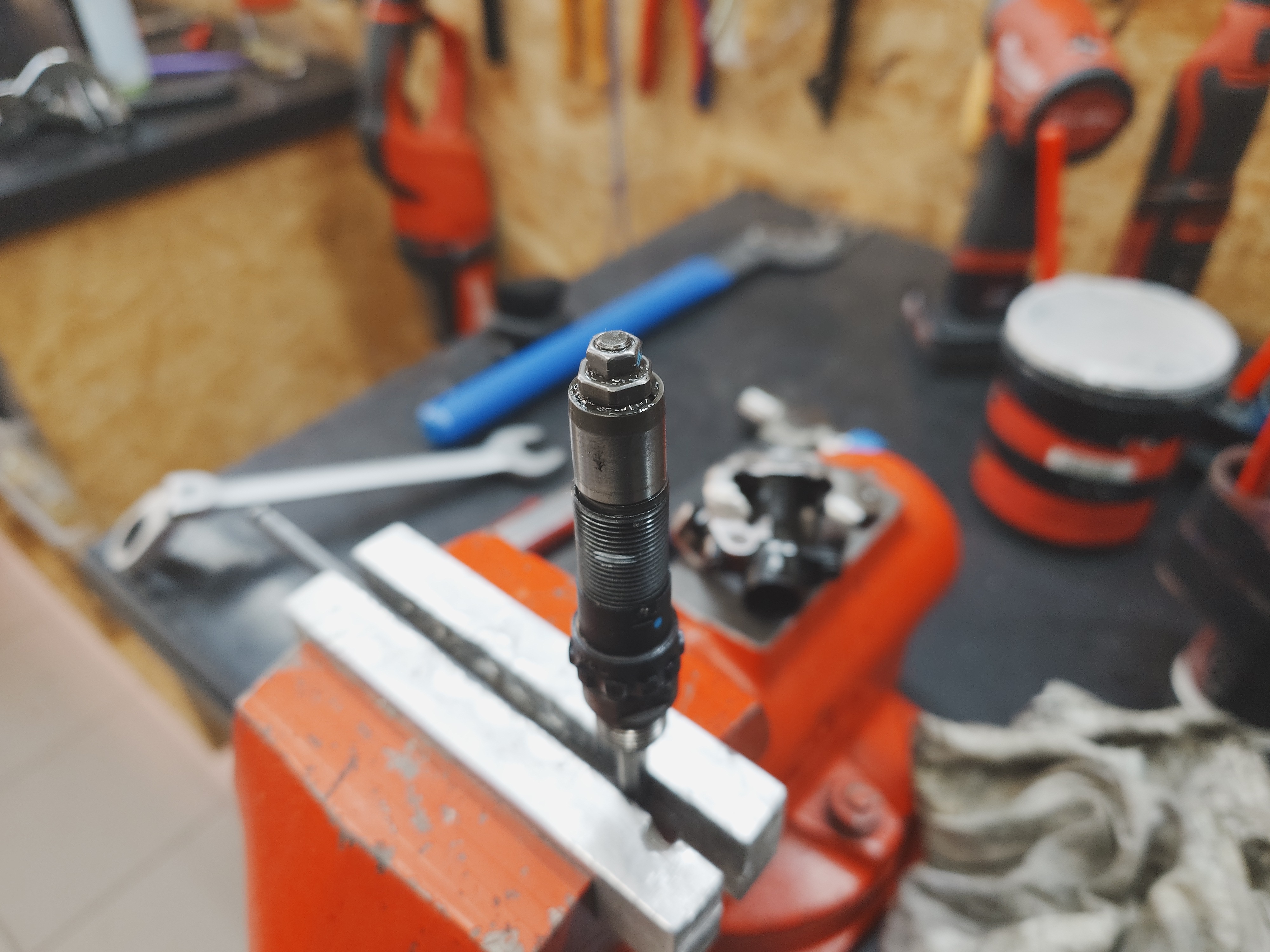 • představec dotažen bez mezery na moment 5 Nm • původně bylo dotaženo bez mezery • krk zakrácen na 5nn podložku • ježek dotažen