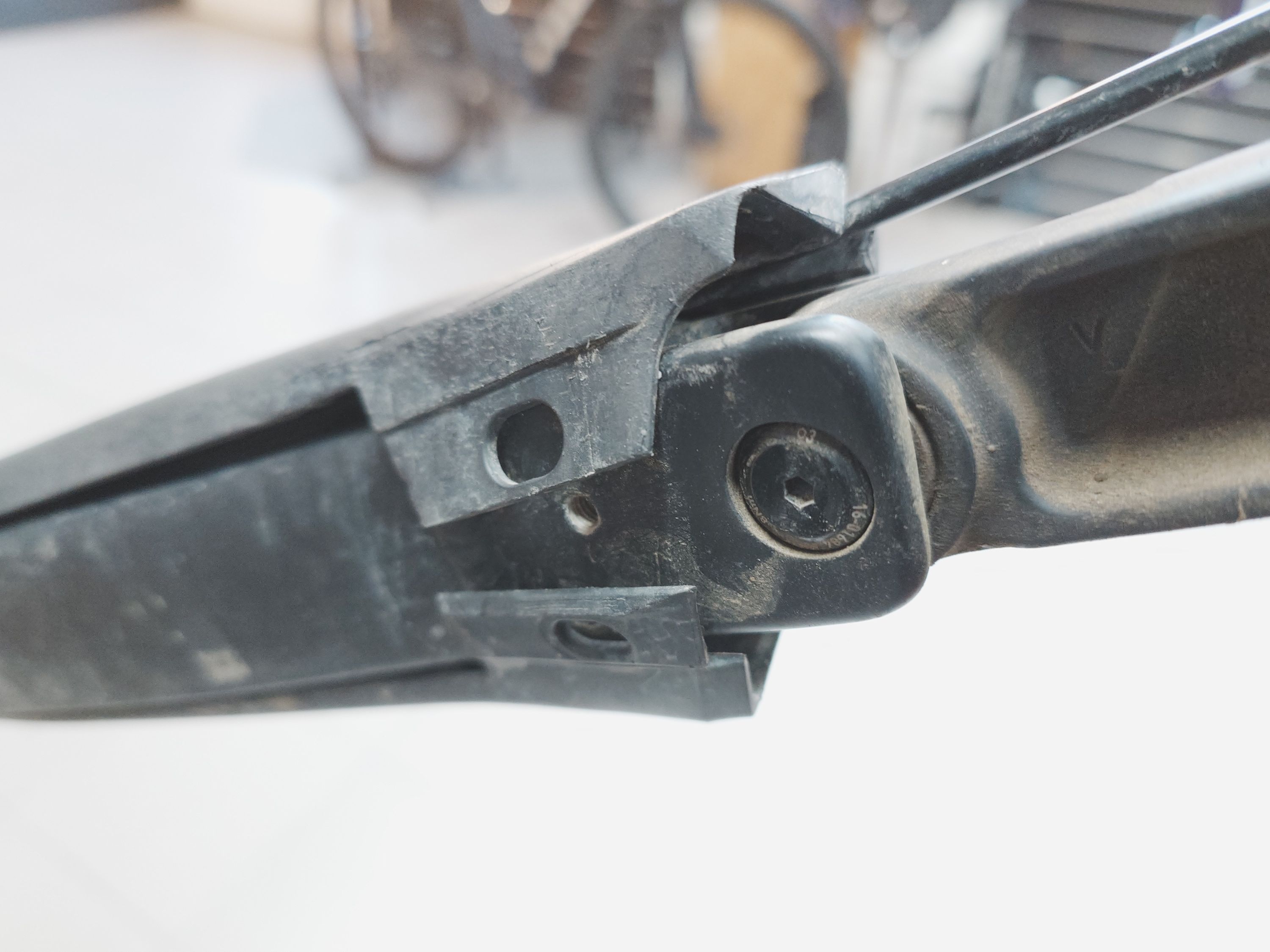 - povolený šroub na hlavním kloubu přehazovačky - zadní destičky sjeté uplně na plech - doplněn šroub do krytu na ochranu řetězové vzpěry
