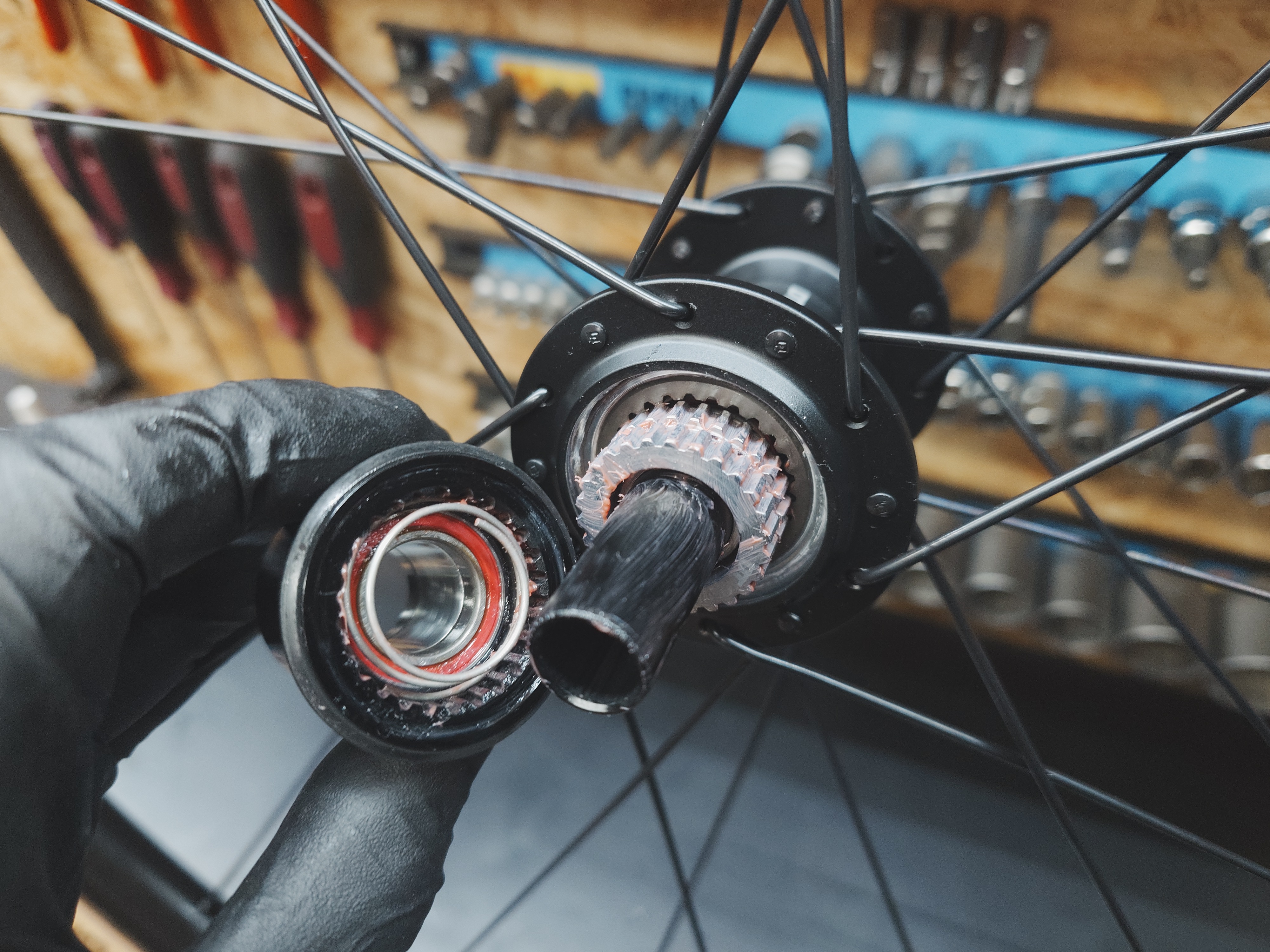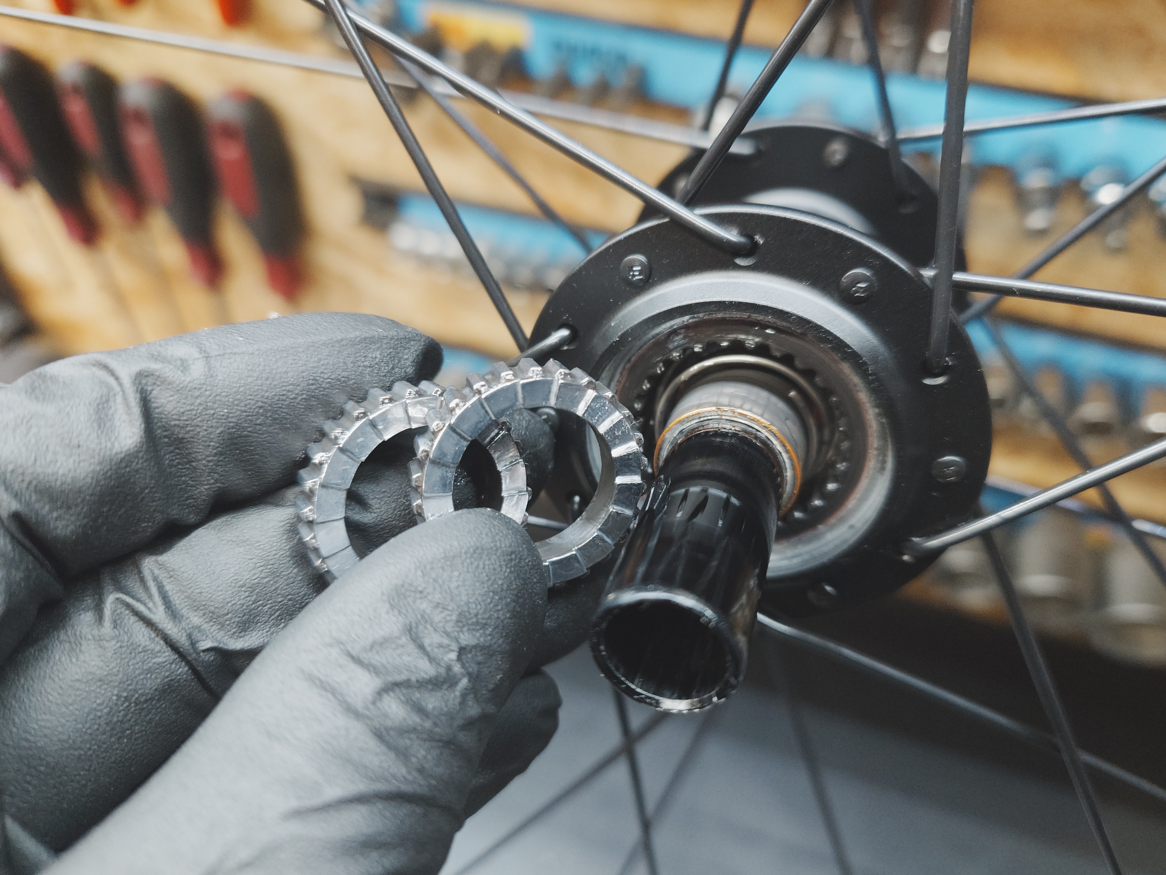 • střed je nakonec ještě dobrý / byl přetažen / nastaveno správně • namontován nový stahovací šroub na kliky