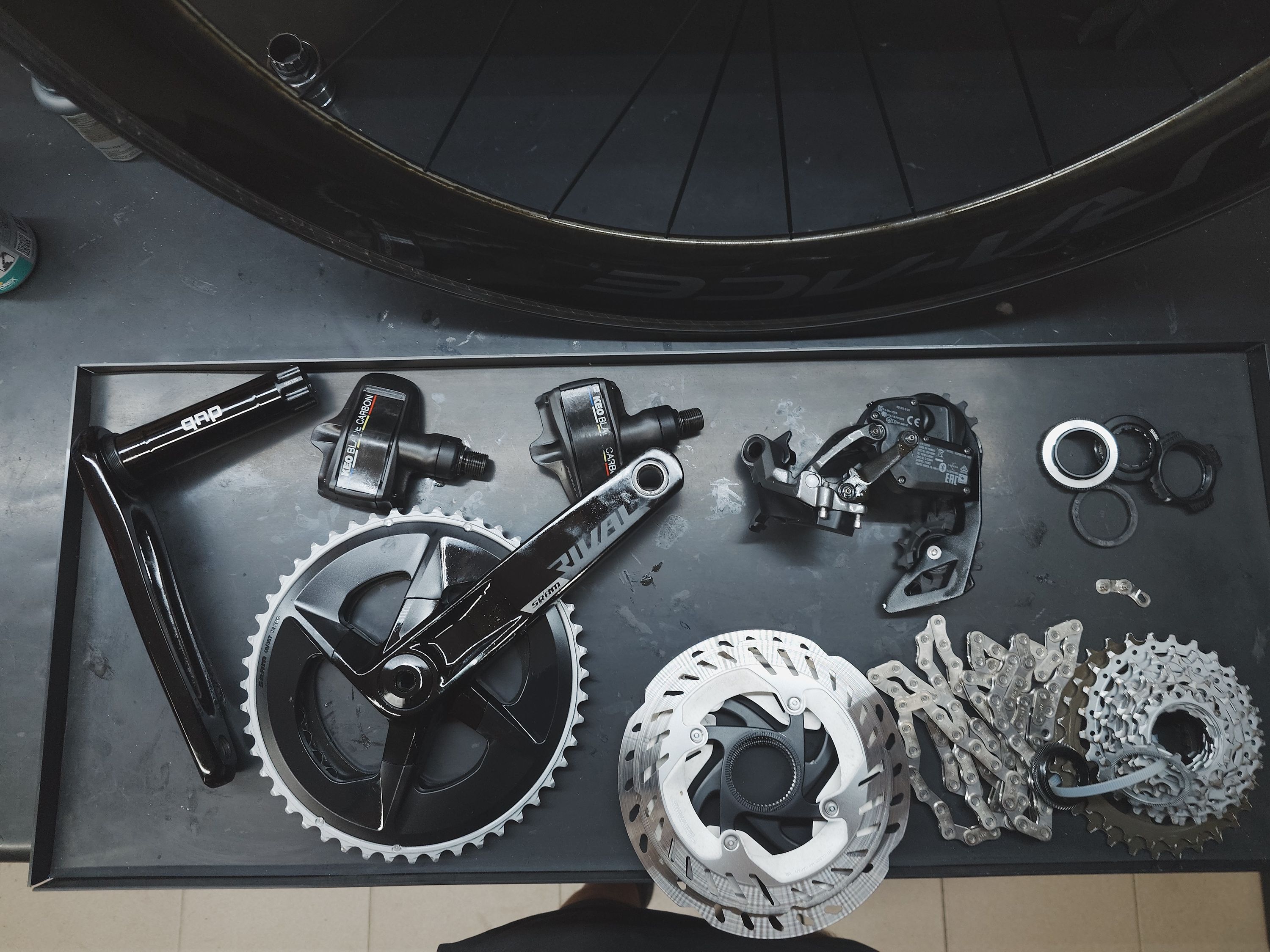 - umýt celé - pořešit defekt zadní galusky - dát novou omotávku - umýt převody - pořešit brzdy - pískají (nové desky)
