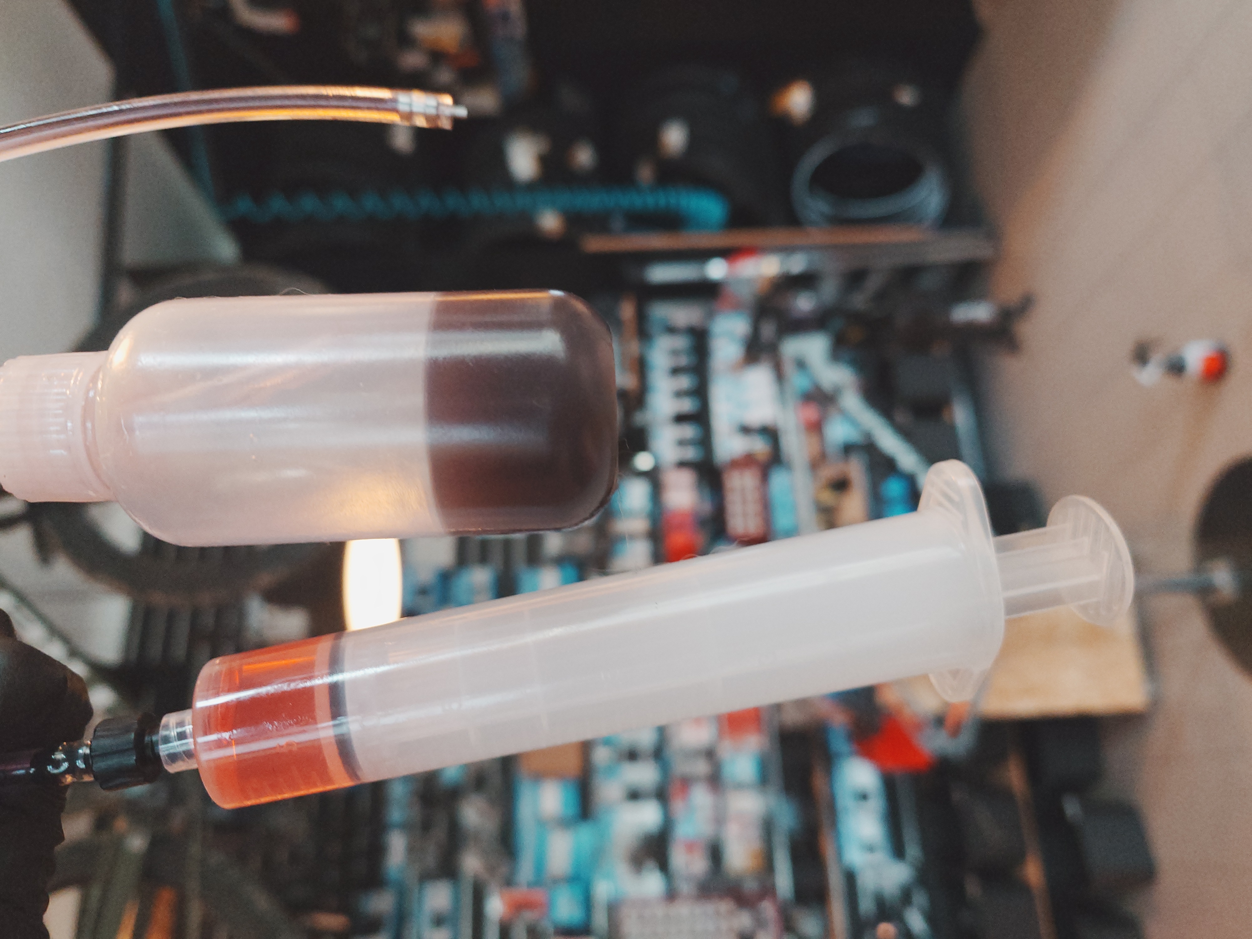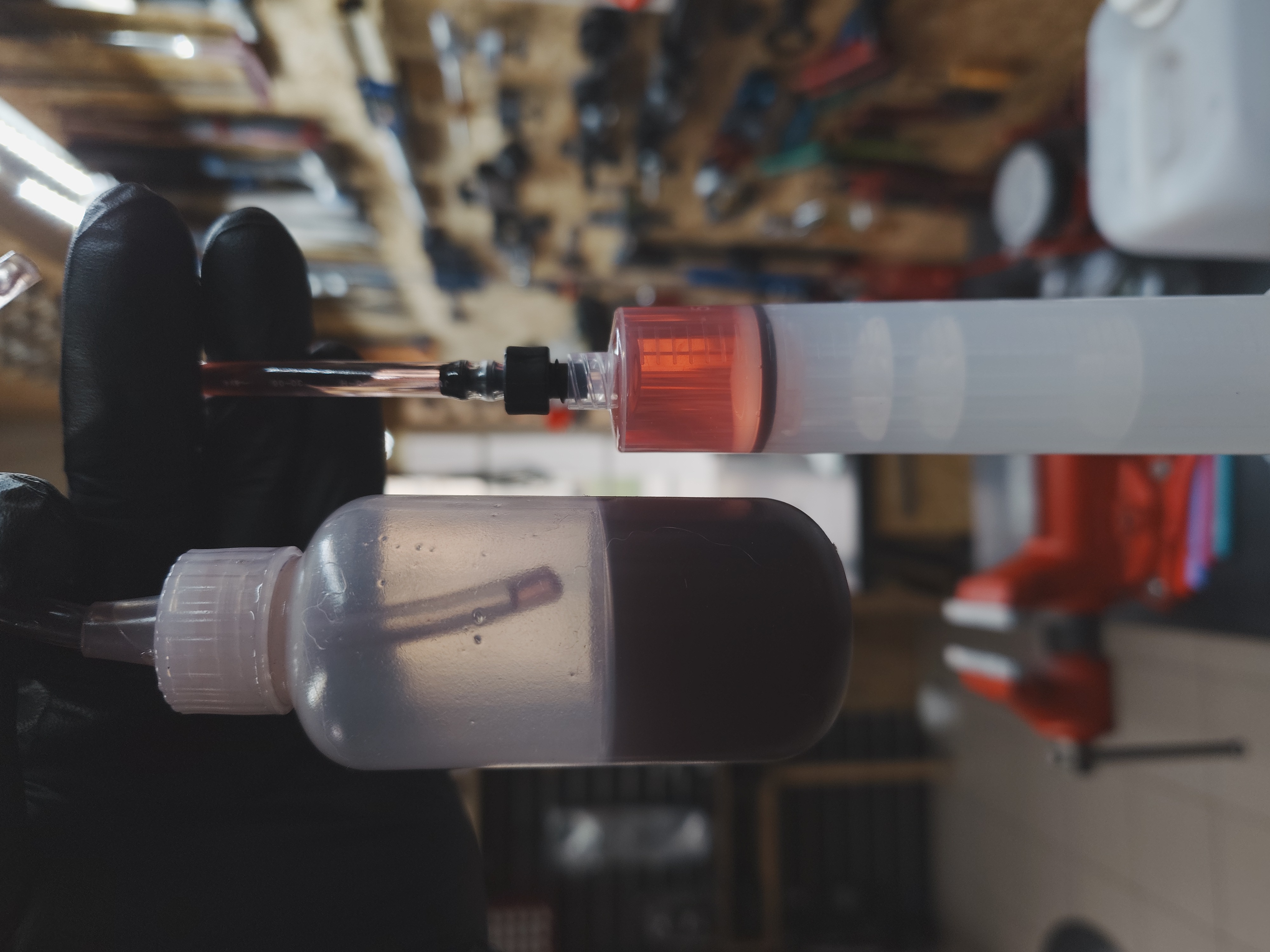 olej velmi špinavýtřmen umytpístky vyčištěny isopropylakoholempístky namazány Shimano brzdovým olejemvypuštění oleje (Shimano Oil) + napuštění nového + odvzdušněníbrzda seřízenaStav OK