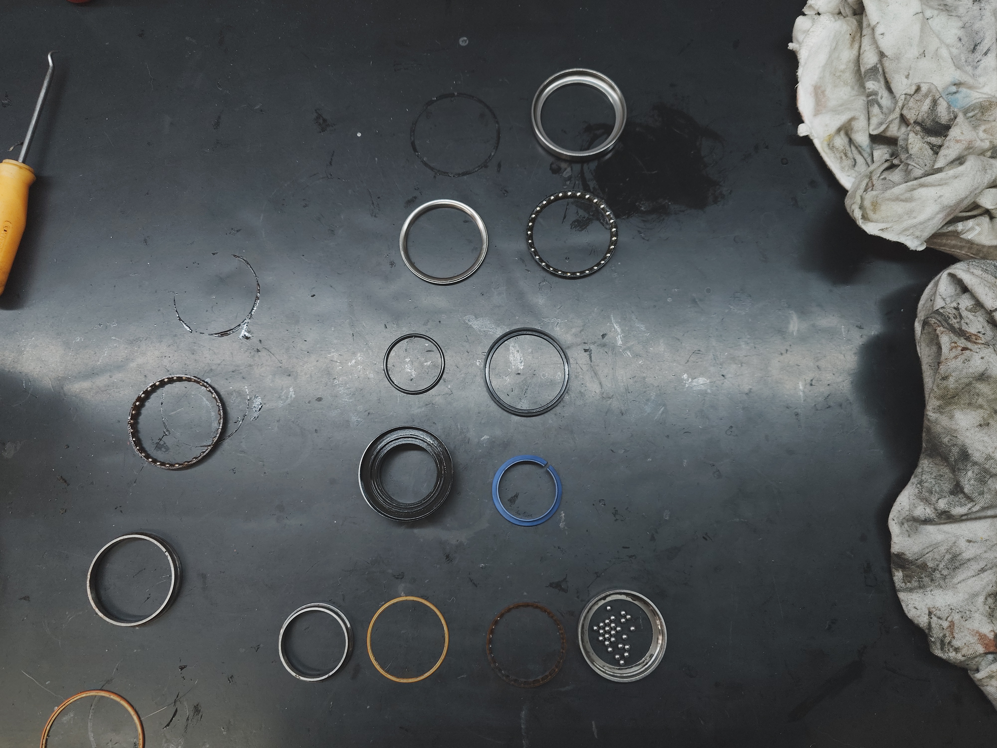 • kotouče byly pod míru / vyměněny • vyměněno nové ložisko v přední nábě / původní dřelo • vyměněno spodní ložisko v hlavě / původní dřelo