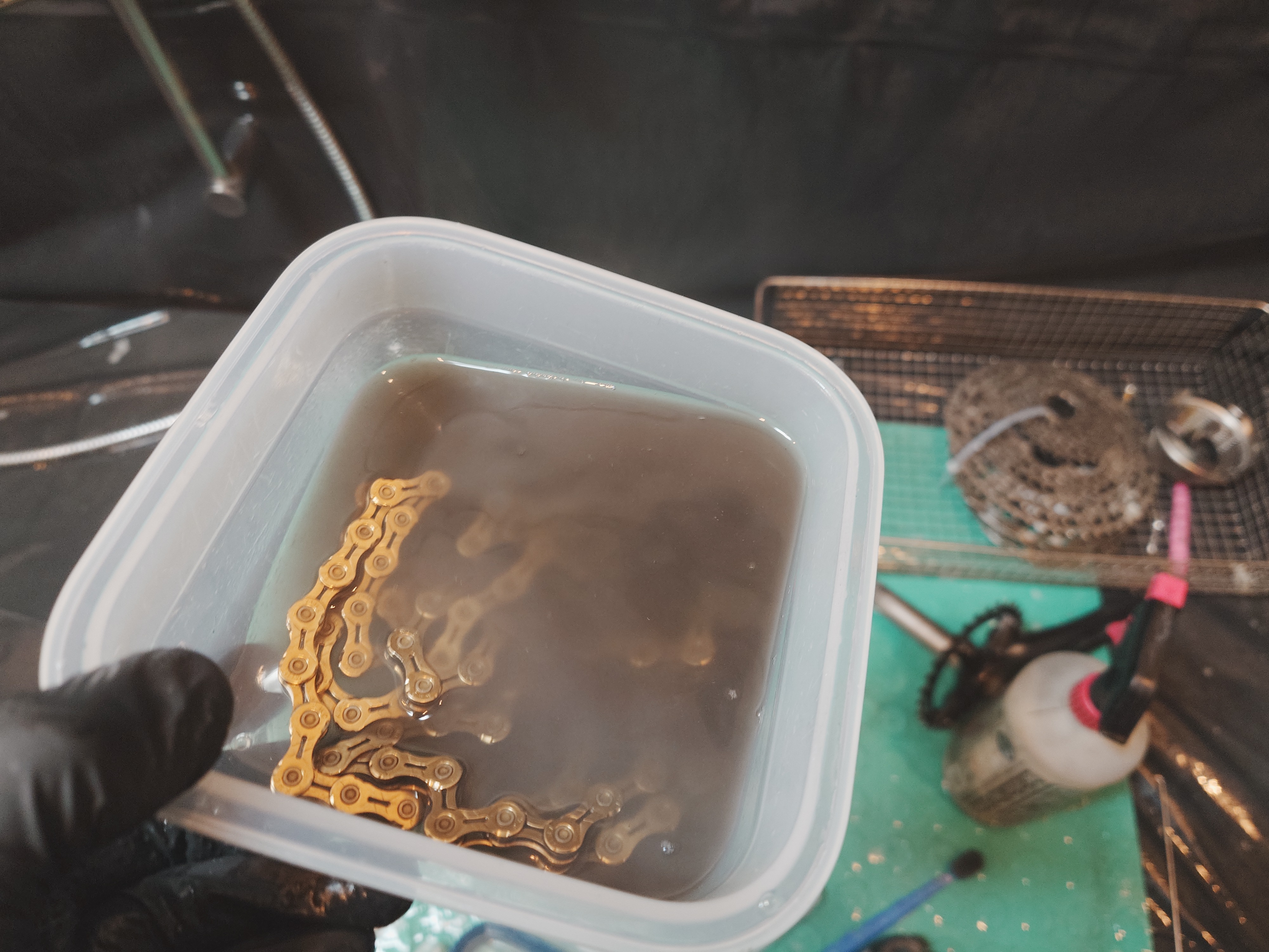 Před mazáním, řetěz vždy vyperu nejméně 2x v ultrazvukové čističce, vysuším vzduchem, odmastím odmašťovačem a nechám vyschnout. Mazivo na řetěz dávám nejdřív až po 12 hodinách od čištění a pak nechám nejméně 12 hodin mazivo zaschnout. Jedině tak má nejlepší výkon.