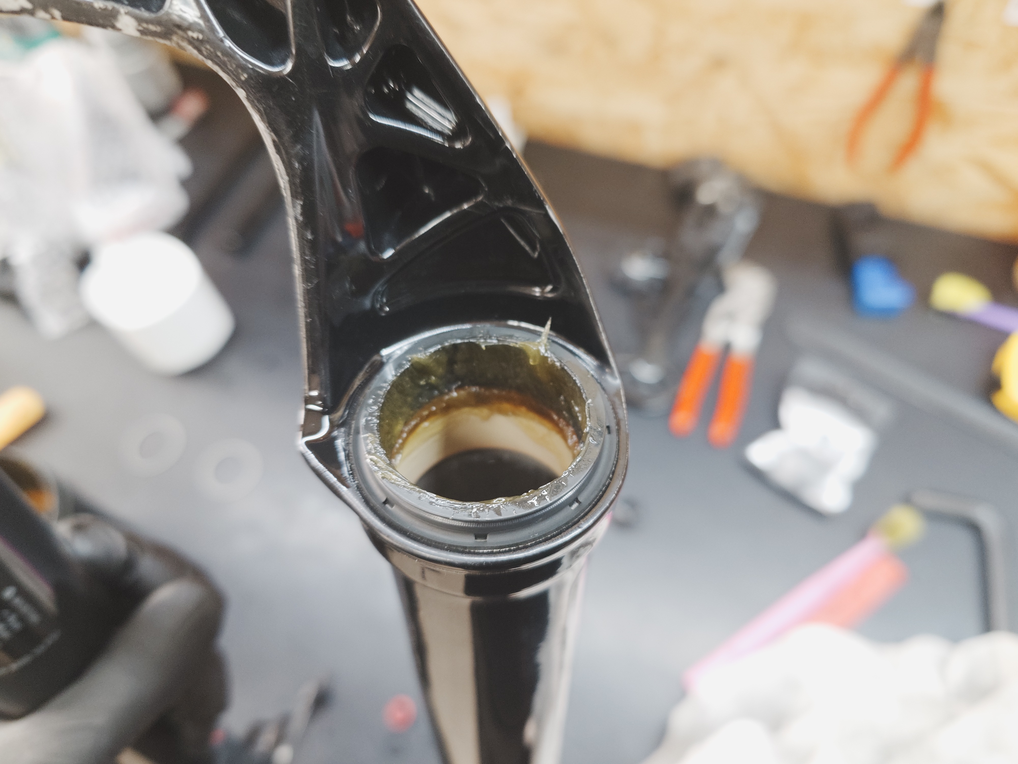 - olej byl hodně špinavý - po rozdělání gufera neměla v sobě mazivo - vyčištěno + namazáno + vyměněn olej ve spodních nohou