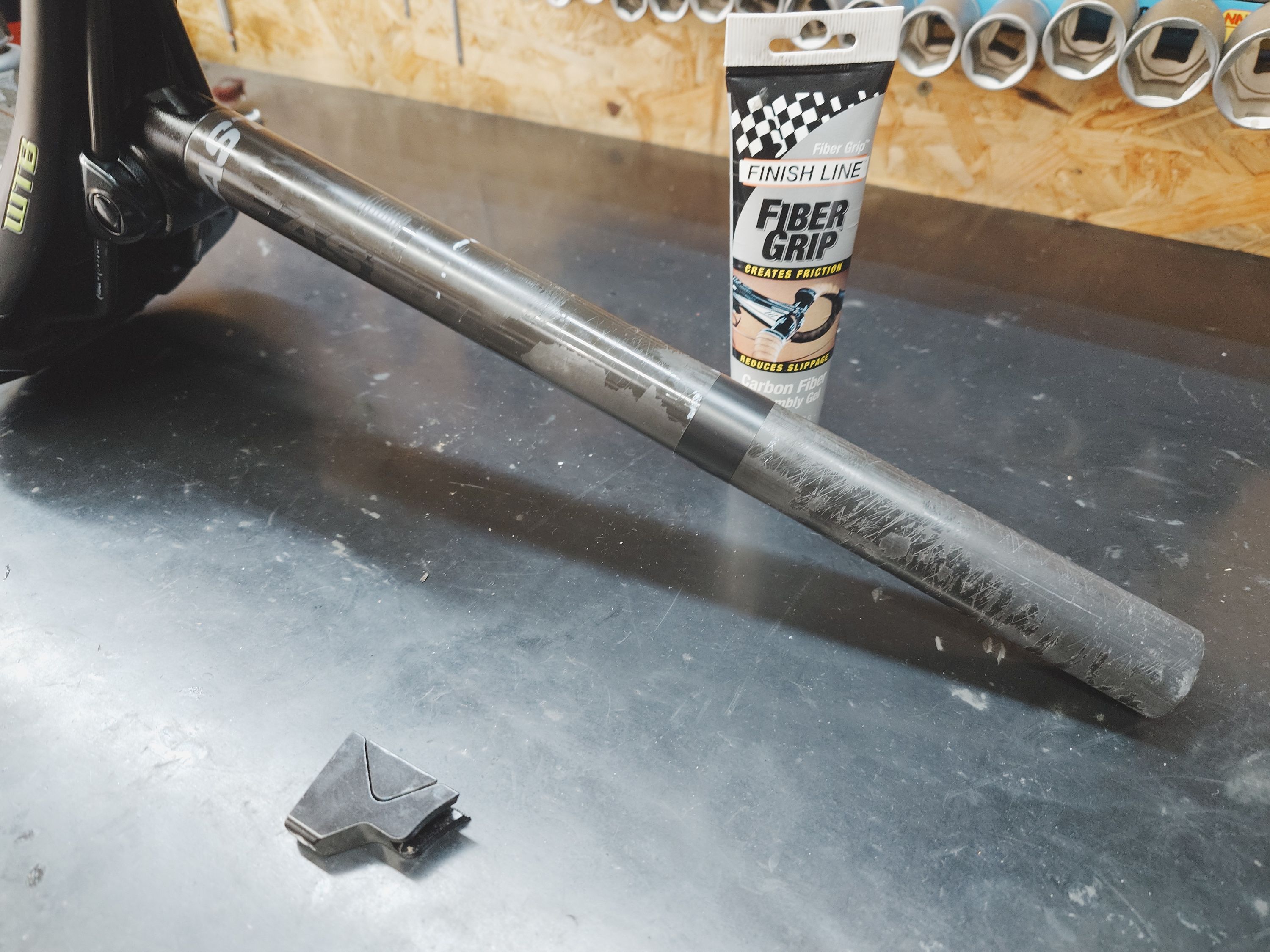 vytažena z rámu (míra zasunutí zaznamenána)volný hlavní šroubvyčištenavyčištěn a namazán zámek sedlovkypodmazána Fibergripemdotažena na moment 6Nmšrouby pod sedlem dotaženy na 8NmStav OK