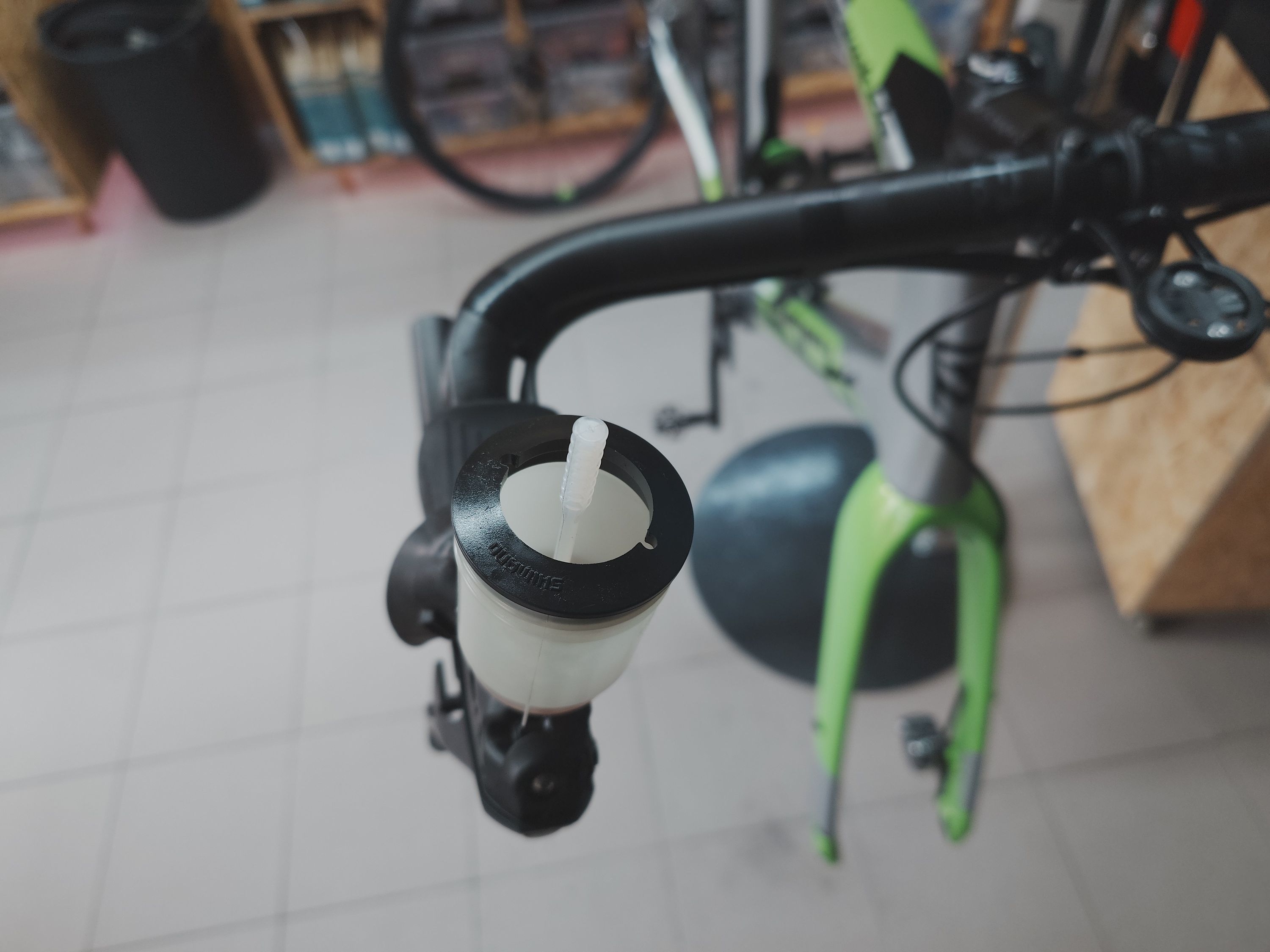 pístky vyčištěny isopropylakoholempístky namazány Shimano brzdovým olejemminiodvzdušnění na desky (doplněna kapalina)brzda seřízenaStav OK