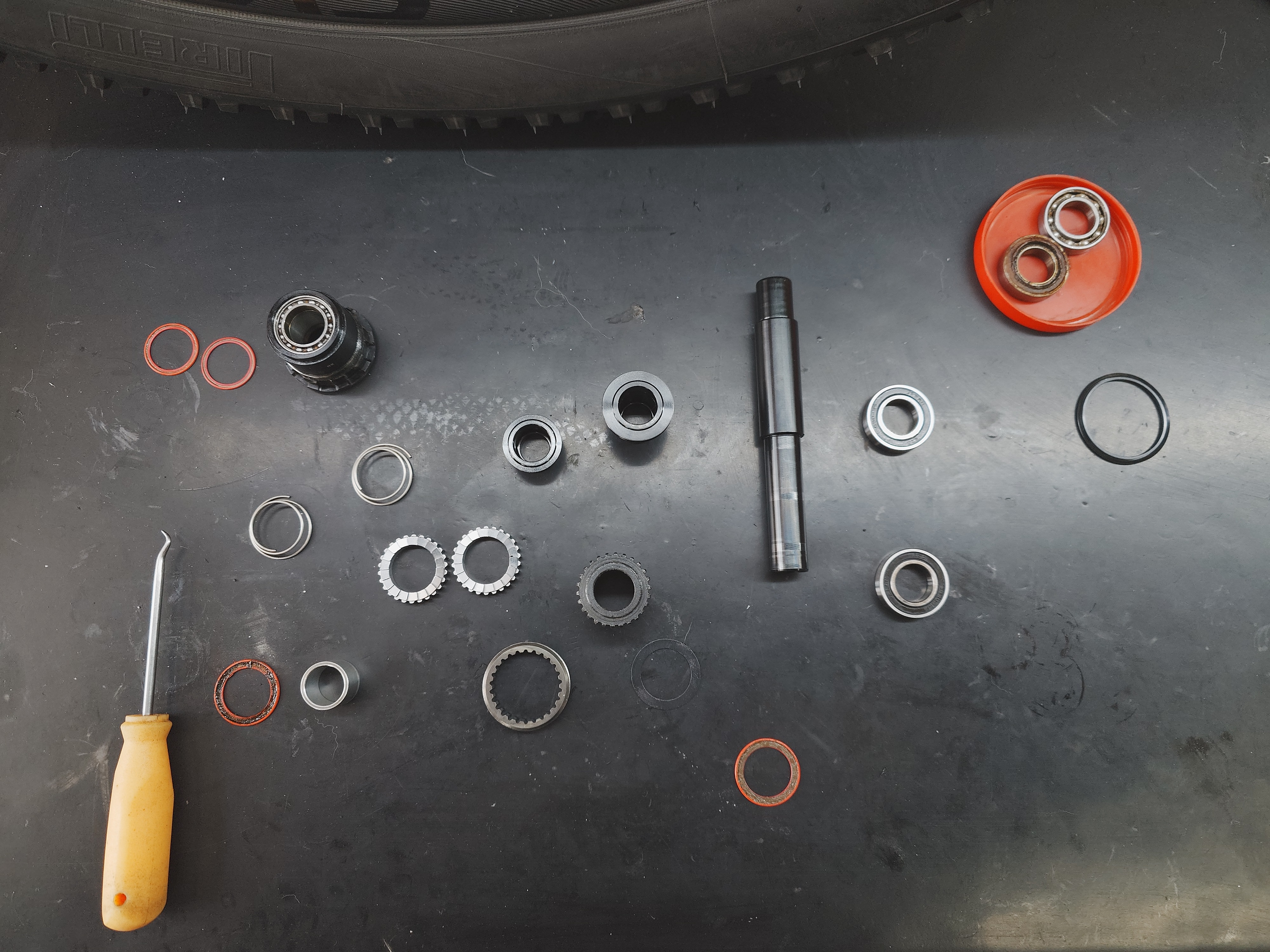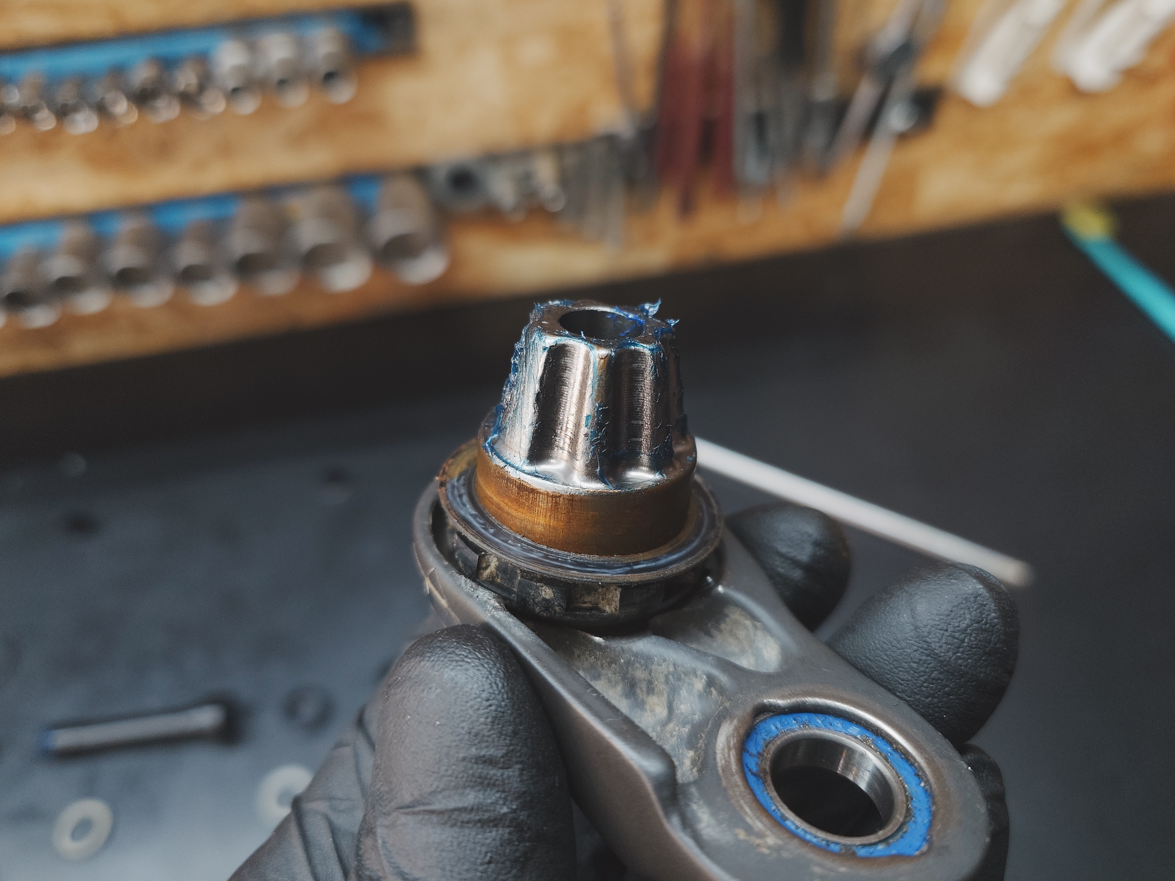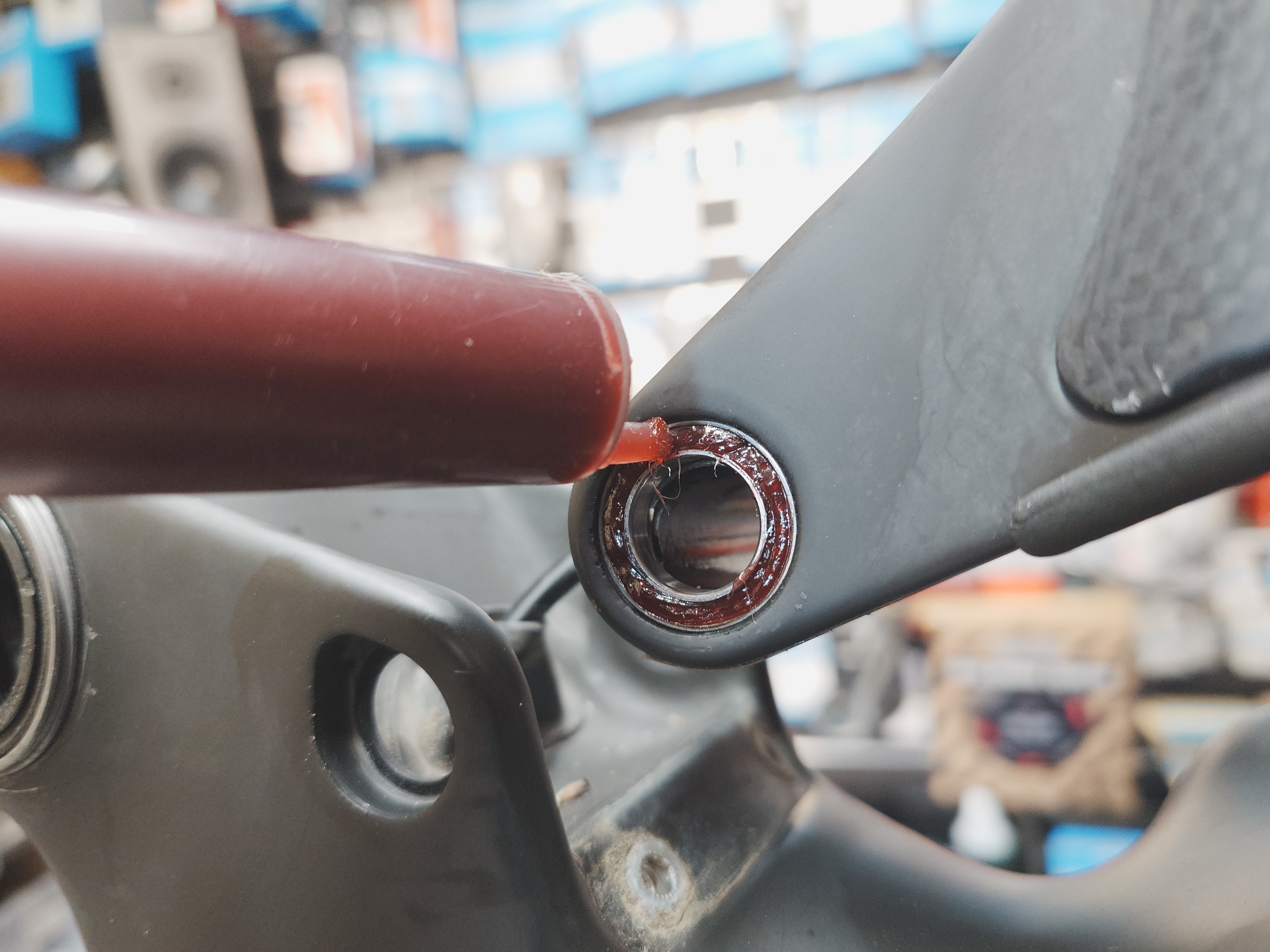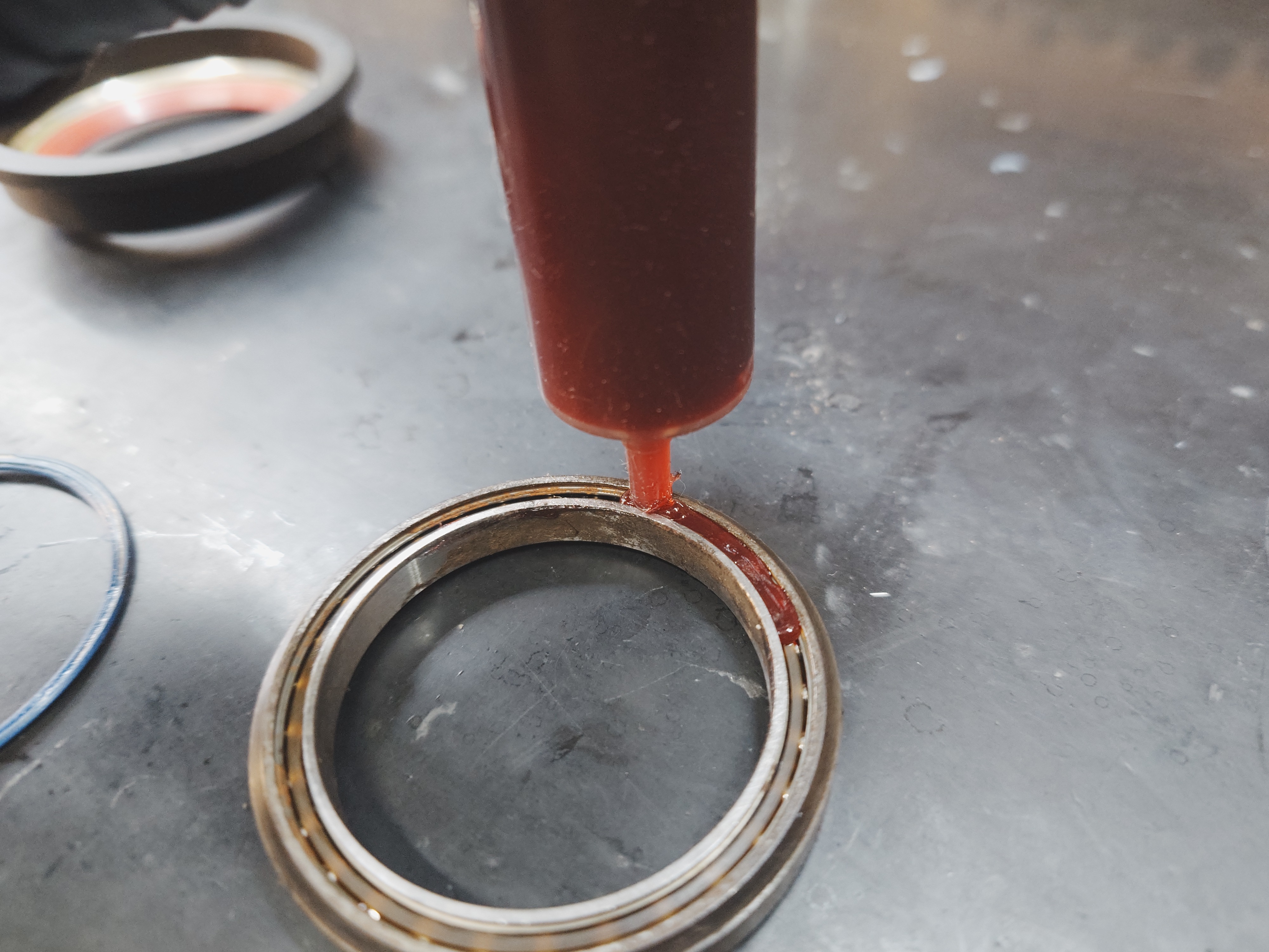 • podrezlá obě hlavní ložiska • vyčištěno uložení • podmazáno Motorex 2000 • hlavní velká ložiska nalepena