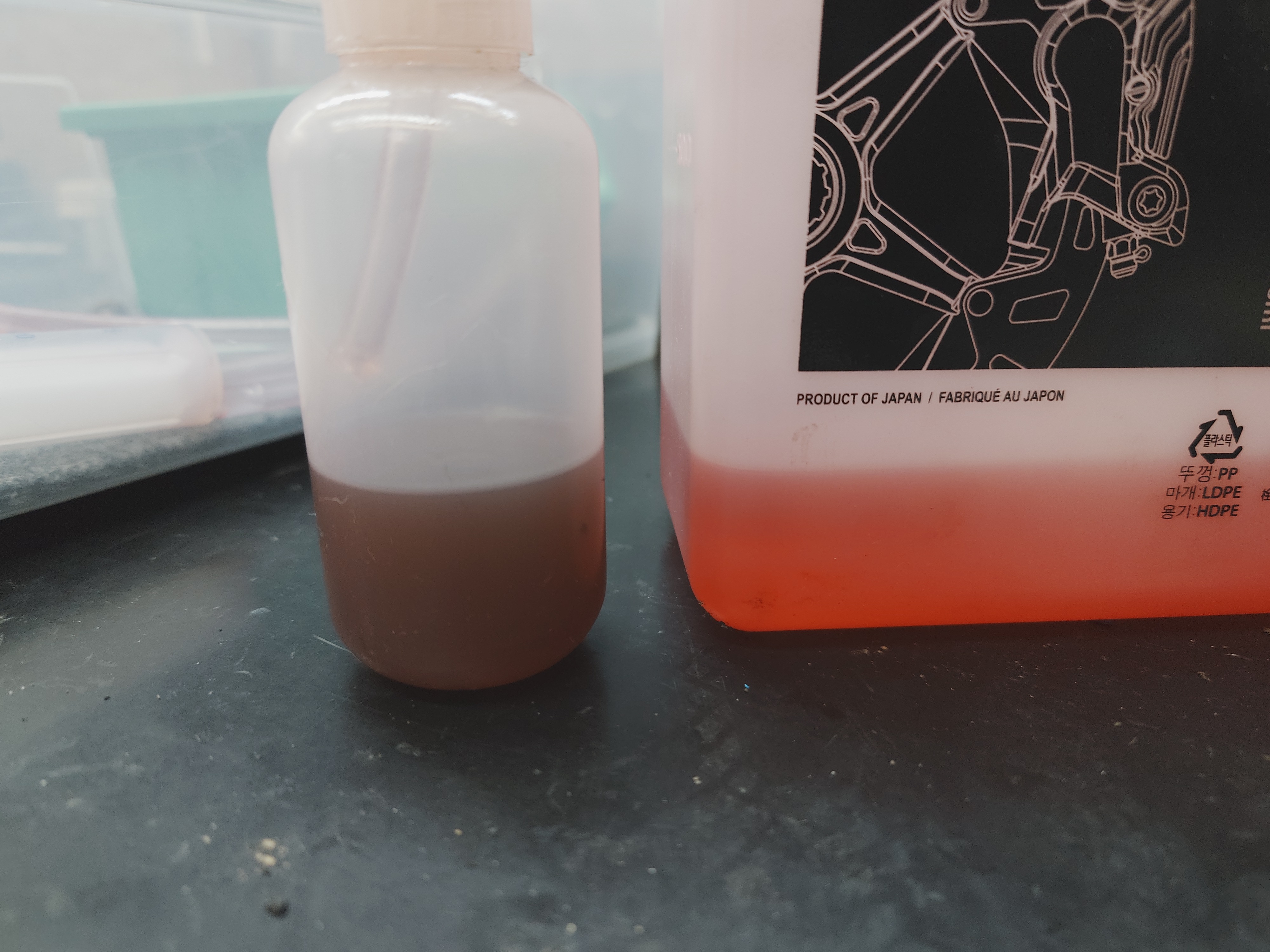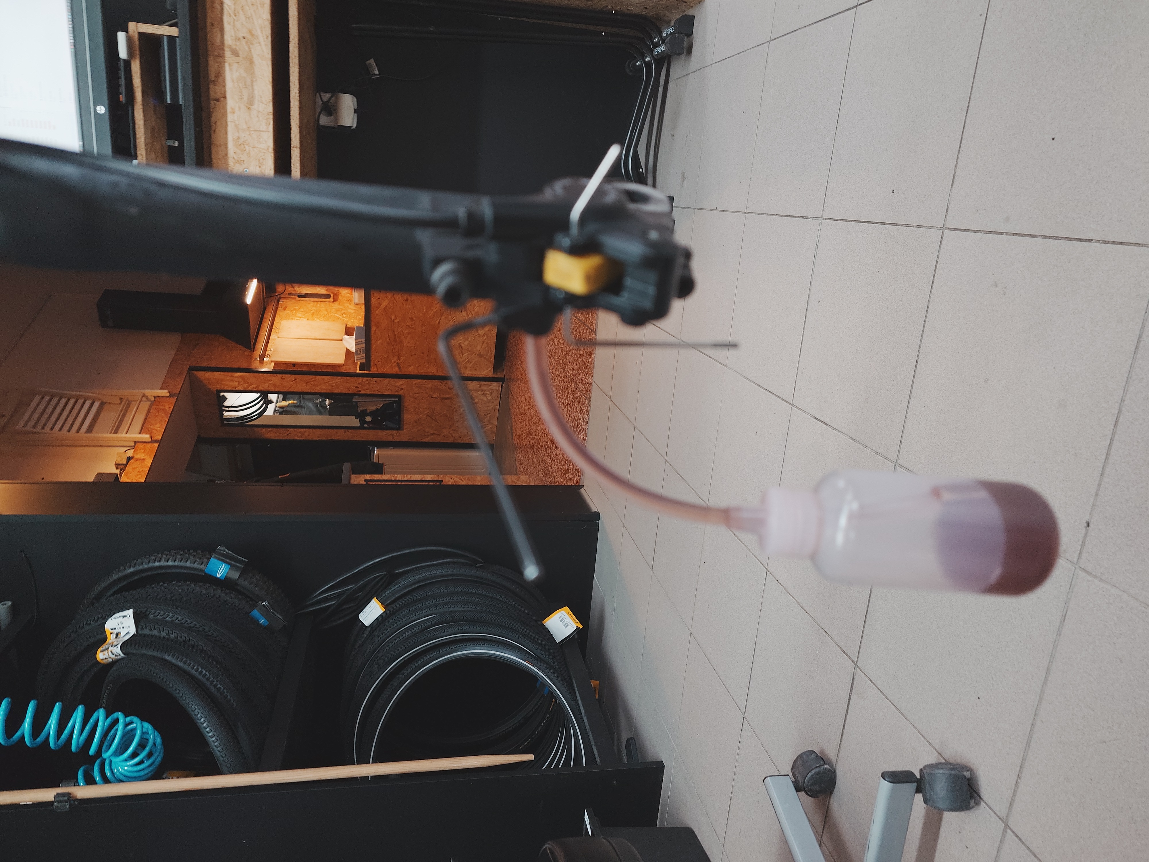 třmen umytpístky vyčištěny isopropylakoholempístky namazány Shimano brzdovým olejemvypuštění oleje (Shimano Oil) + napuštění nového + odvzdušněníbrzda seřízenaStav OKolej lehce znečištěnývolné hlavní šrouby