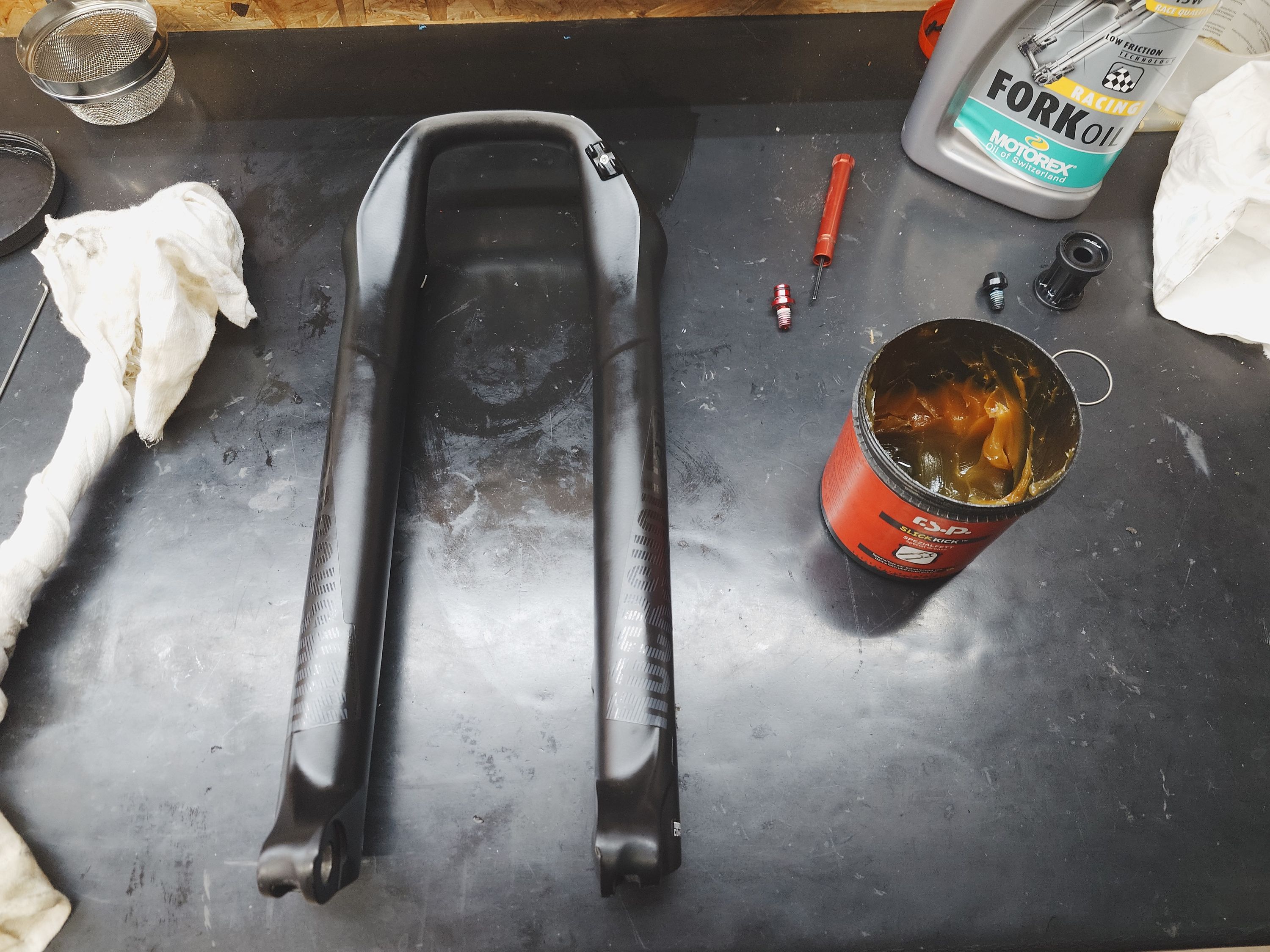 - vyměnit střed - řetěz namazat mazivem do sucha (muc-off) - doplnit mlíko - odrazit spodní nohy vidlice a namazat