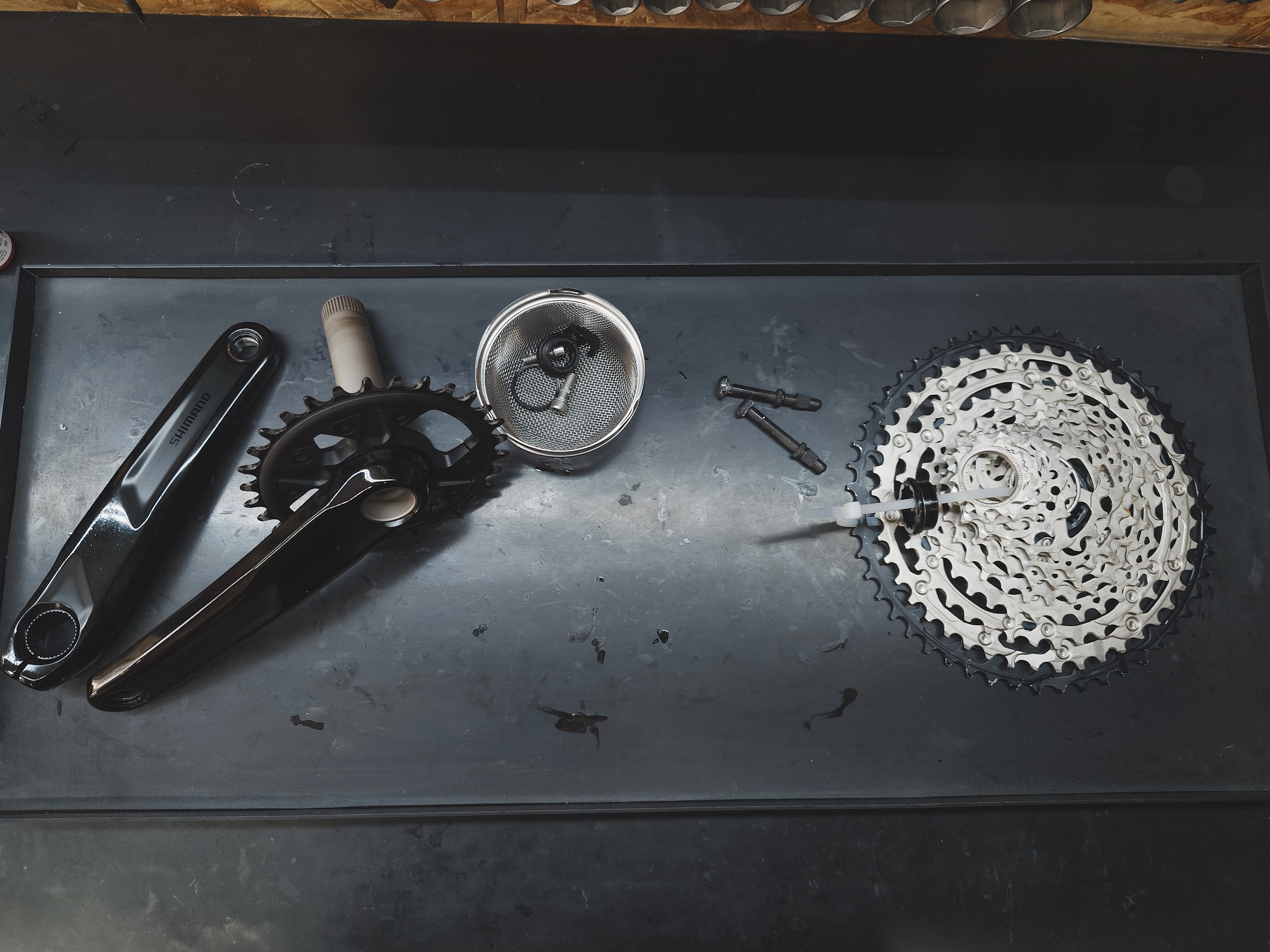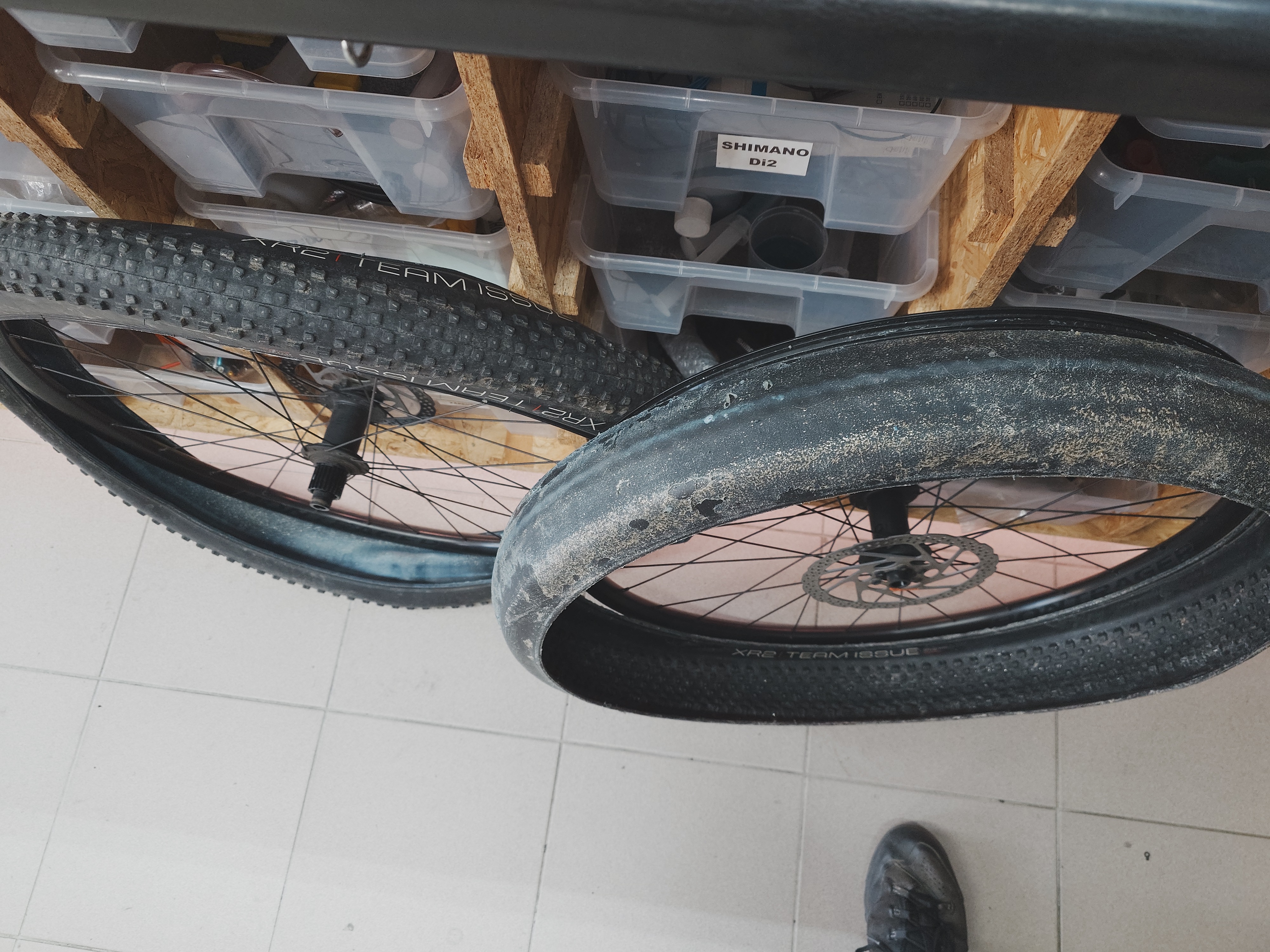 • ponechány plastové vložky v ráfku / plášť jde nasadit • sundány ochranné samolepky na rámu • vypadá to na vyjetou kazetu / po projetí potvrzeno / kazeta vyměněna za novou