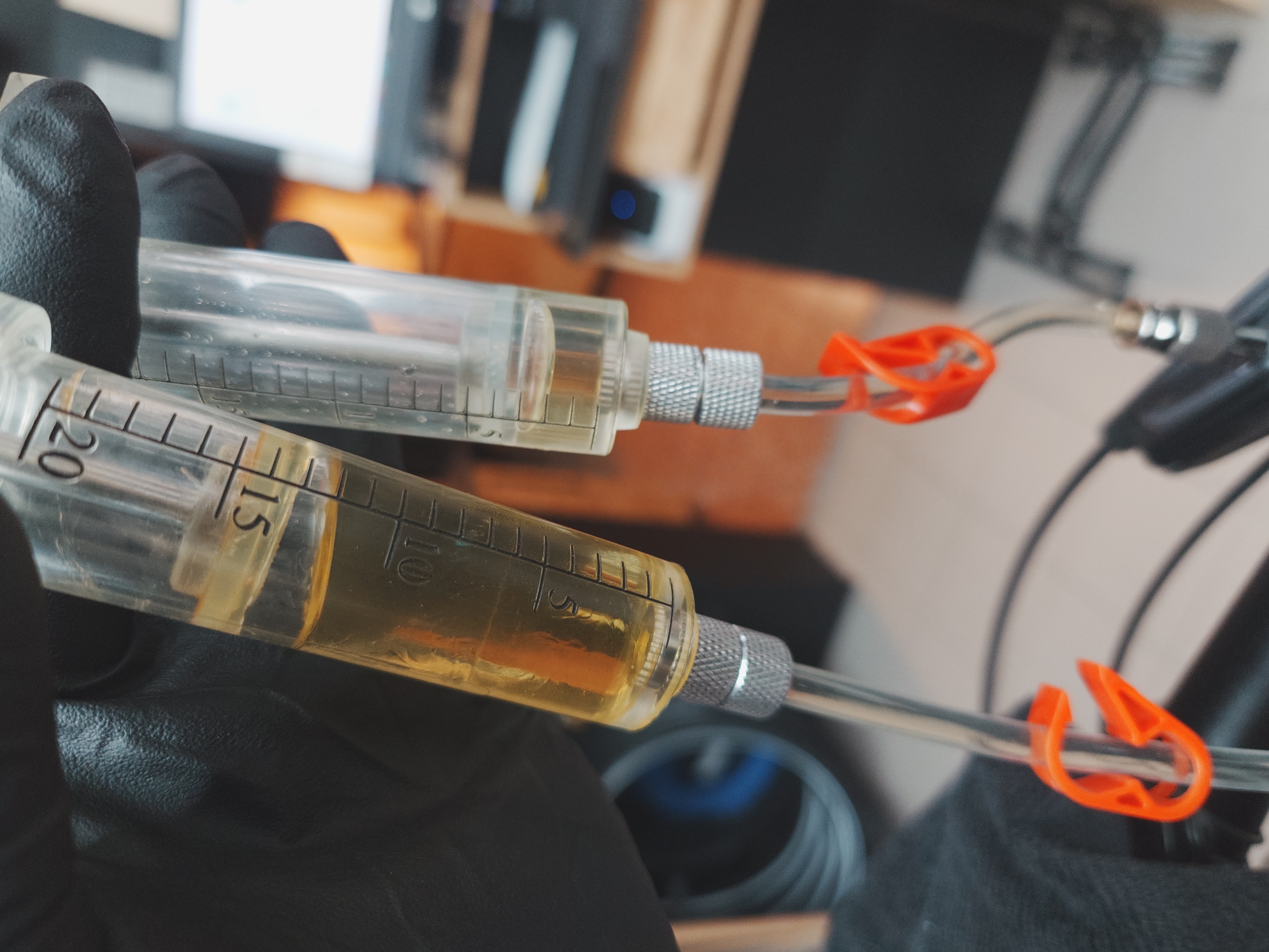 • odvzdušněn lock-out na 2x vidlice stále nefunkční • nakonec zkontrolována výška oleje v patroně (málo oleje v patroně) • doplněno na požadované množství • vidlice už zamyká