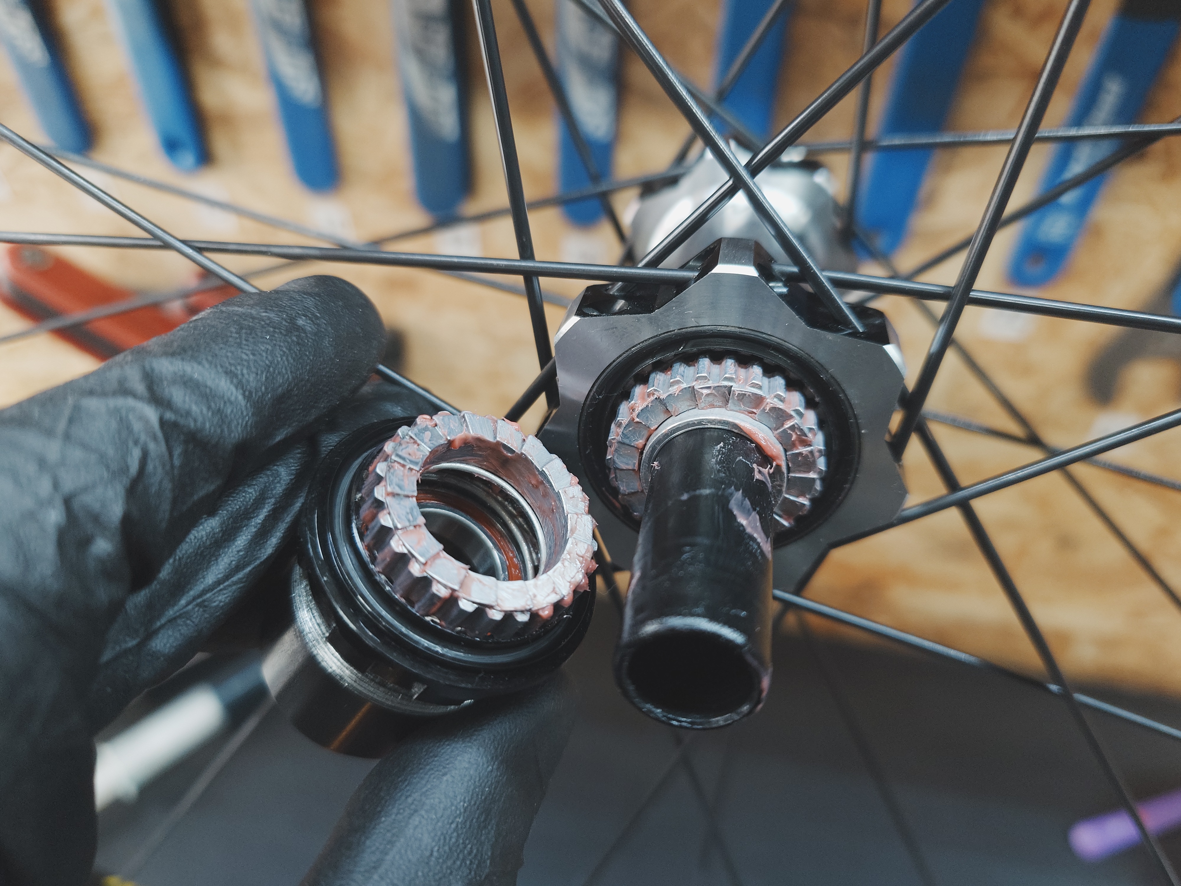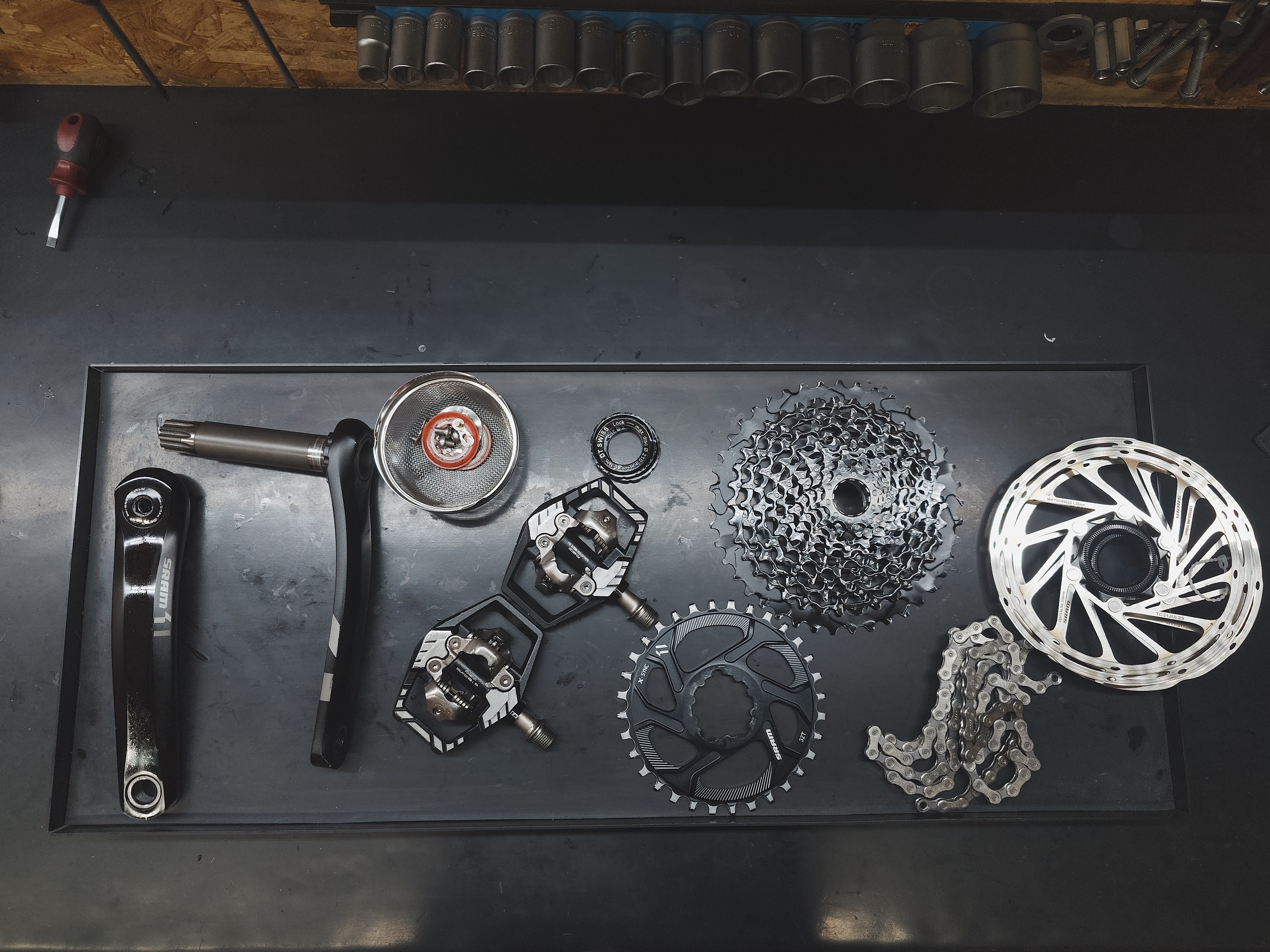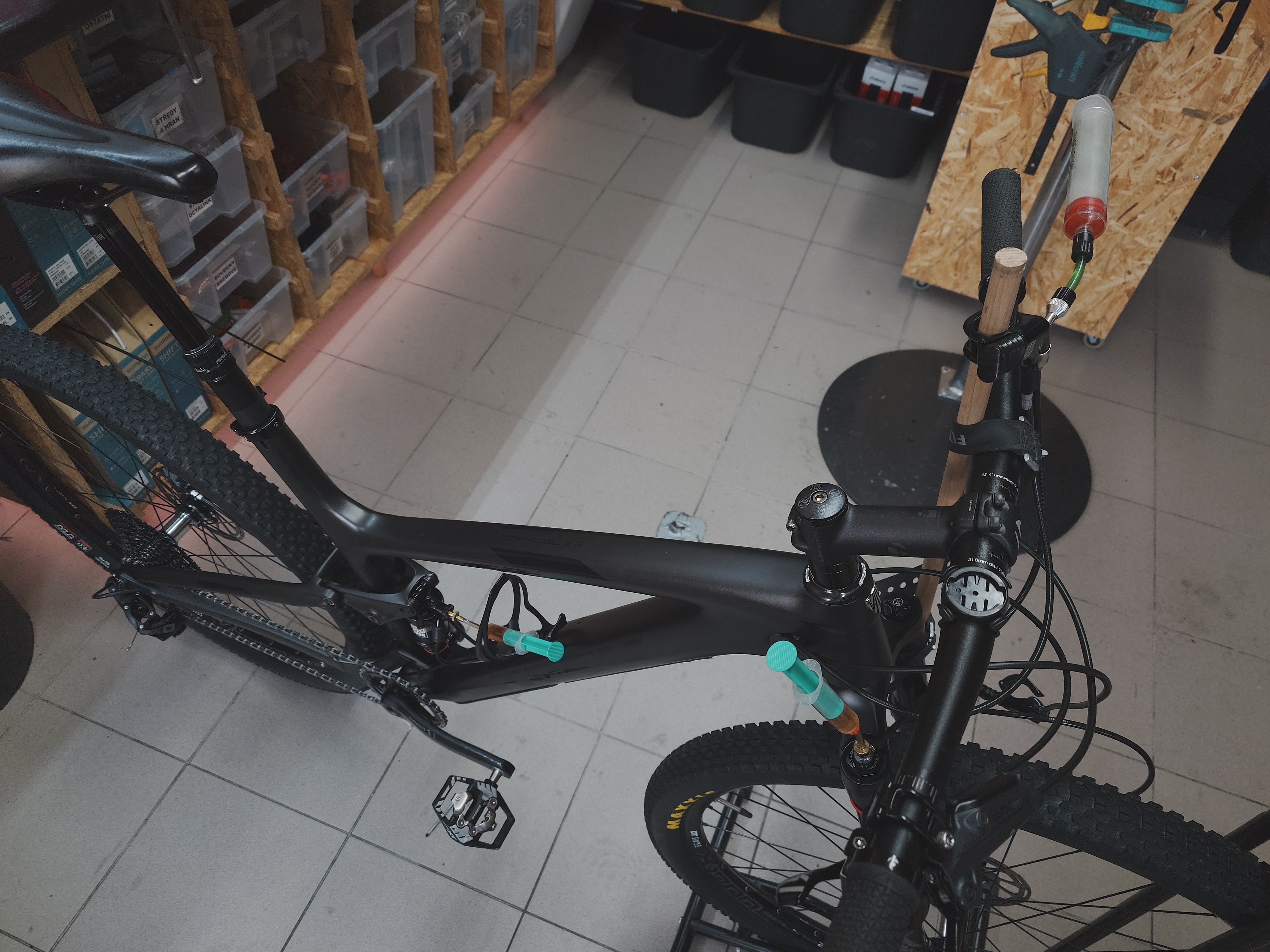 • na zadním kole háže plášť • některé hliníkové niple jsou už zarostlé • odvzdušněn lock-out 2x / vidlice stále nezamyká • nakonec zkontrolována výška oleje v patroně (málo oleje v patroně) / doplněno / vidlice už zamyká